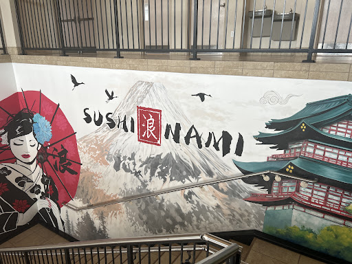 Atmosphere: ★★★★★ The atmosphere at Sushi Nami is inviting and well thought out. Upon entering, you are greeted by a stunning Japanese painting mural, setting a serene and culturally rich tone. The lighting is inspired by pop culture, adding a modern twist while maintaining a relaxing ambiance with light background music. The restaurant also caters to sports fans with TVs showing live games, and it boasts a full bar for those looking to enjoy a drink with their meal. Even though the restaurant is located on the second floor, it is fully wheelchair accessible, thanks to the elevator.