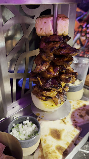Then came the food. ⢠Birria tacos arrived hanging on a mini clothesline, yes, an actual mini clothesline with clothespins. A+ for drama and flavor. ⢠Tacos al pastor came on a tiny tabletop rotisserie, with live fire keeping the pineapple-onion-topped pork warm. ⢠And yes, they even have sushi. We were skeptical, but it works. We had the tuna tatakiâthey were out of jicama, so they subbed in crispy fried leeks. It was perfection.