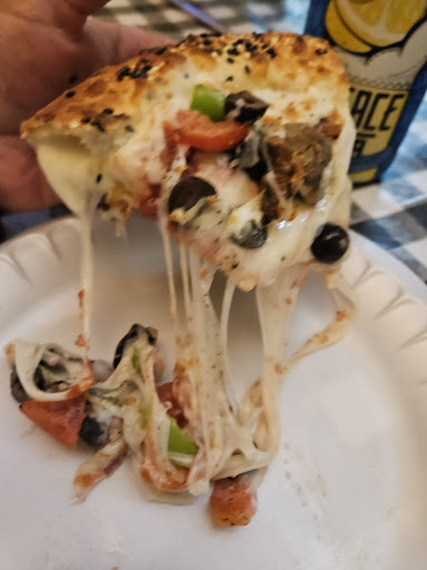 ย ย ย Read moreThe location made us raise an eyebrow. It's in an almost abandoned plaza, empty parking lot. We walked in and wasn't sure if we'd stay, it was smaller than expected (only had 2 1/2 booths) and a little discerning. We decided to stay and order anyway. OMG! From the first bite! It was delicious, thin crispy crust, we asked for it to be stuffed crust and she said they could (which wasnt needed). I've never seen so much cheese on anything my whole life! The gooey melt cheese, just amazing! Fresh ingredients as well! I got a medium veggie pizza, my friend got a large meat lovers. Worth every penny and will be a return customer!!!...