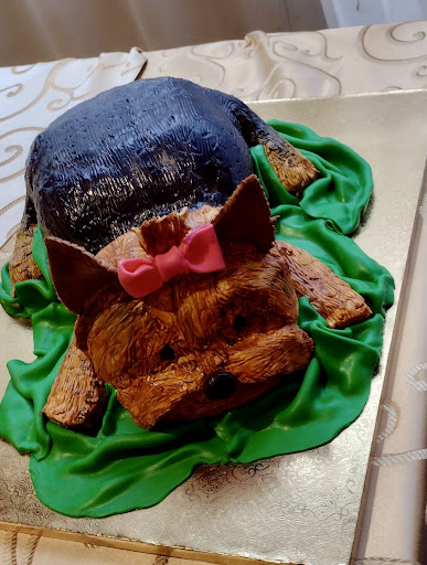 They make beautiful cake designs but I was on tight budget for a 90 person wedding and wanted to have a surprise groom’s cake, so I went with a plain white wedding cake. It was still gorgeous! The groom’s cake of our Yorkie was hysterically perfect! I emphasized that she has big ears and they nailed it all! The fondant on the groom’s cake was the perfect thickness and not too sweet so it was just as delicious as the wedding cake.