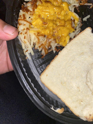 My bowl arrived at the table, and seemed pretty undesireable at first glance, after mixing the toppings into the rest, the hash browns & cheese gave the whole dish a more pleasing appearance. The steak in the bowl decided it wanted to fight back. It gave my jaw a life sentence of chewing with how tough and leathery it was. The hash browns were cooked perfectly, and the onions and mushrooms gave it that extra kick of flavor that the sliced American cheese failed to bring to the table. I then decided to try a bite of the biscuits smothered in gravy. The gravy was very good, and had just the right amount of black pepper & sausage to give it a perfect flavor without being too salty or peppery. The biscuit underneath, however was still dough in the center, which as you can guess was a huge letdown.