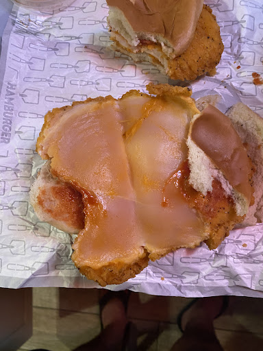 Read moreThey keep having my review deleted, so I’m posting it again bc I will never let this location forget what they did to me! I ordered two spicy chicken sandwiches on uber eats and when I bit into it it was hard to bite through, I looked at it and it was a breaded piece of completely raw chicken, I was amazed at what I was looking at, I drove to the store to show them, they offered to make a new one and I declined bc why would I want to eat from a place that would be so careless as to serve someone a completely raw piece of chicken!? I mean I just do t understand how anyone can be that moronic! But I noticed they deleted my review for a second time, so here it is AGAIN, for a third time, take a look at the food they served me! This has to be a health code violation and I should’ve reported them! If they keep trying to delete these reviews of mine I will look into...