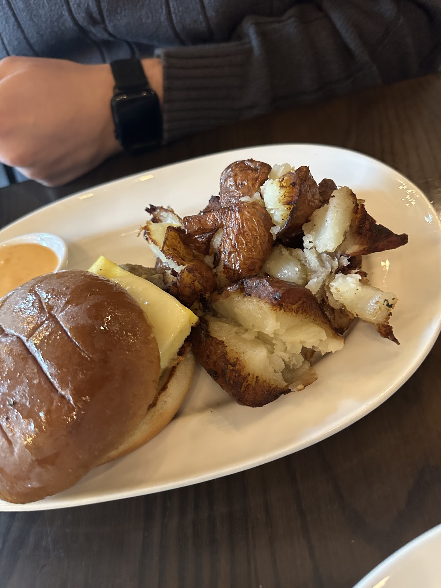 Read moreI went here for brunch after wanting to try it for a while. The atmosphere and environment were cute. The service was sub par, our waitress did not keep up with refills and barely spoke to us the whole time. She delivered our food to our table without saying a word, not asking if it loooked ok or if we needed anything else, and every time I needed a coffee refill it took at least 5 minutes. I got the breakfast plate with sausage and grits. As you can see in the photo, the scrambled eggs looked as if they were sitting out for a bit before getting delivered to the table, and were luke warm. The focaccia came with no butter or jam, and when finally got attention from our server to ask, she took over five minutes to bring some to me. (I personally don’t like dry toast with scrambled eggs, and there was no option to get over easy). The sausage was spicy, but good, and the grits were creamy but lacked flavor. The scrambled eggs had good texture but also lacked seasoning. We also got the mcvetti breakfast sandwich, the egg was a square cut out scrambled egg and the sausage was less than the amount that came with my plate, so it was basically just egg with one slice of cheese. The potatoes were good tho. You can see the picture of the sandwich, you can’t even see the indent of the sausage under the egg because it was so thin and small lol. We both agreed we would rather have a breakfast sandwich from McDonald’s than ever get that again, but we also agreed we will not be returning and advising our friends away from brunch here. The Bloody Mary we had was $12, came with an olive, a slice of lemon and celery, and was ordered spicy but was way less spicy than the sausage. My fiancé LOVES bloody Mary’s and we get them at every brunch we go to, and this one was disappointing, and he said weirdly enough, it was slightly sweet. Overall, we were extremely underwhelmed with the brunch here and would not recommend it. Charging $14 for a breakfast sandwich like this is ROBBERY. The pecan bomboloni were...