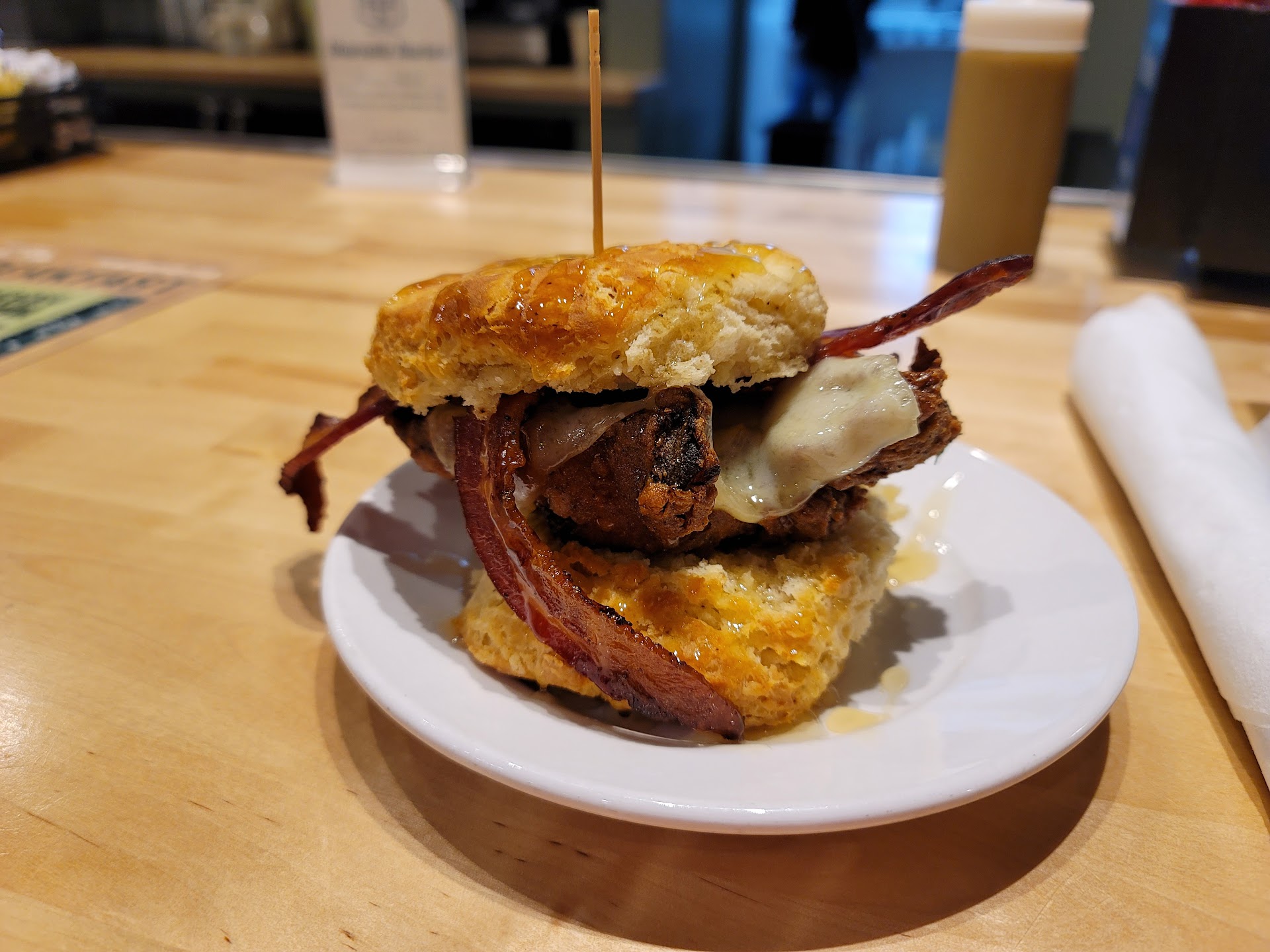 Read moreIt's been 4 months, and I had to stop back in for another delectable delight. This time around, I tried the Mother of all Biscuits, and I made it a dirty bird (adds hot sauce, honey, and candied bacon). The sandwich is bigger than expected, topped on a light and fluffy biscuit, drizzled with honey and hot sauce (I got the hot sauce on the side). This was a nice sweet and savory mix. This place is full of good food. If you have not stopped in, come by and give them a try.