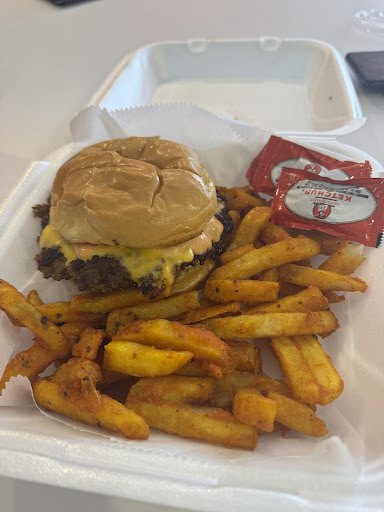 Saw a fb post recommending, was in the area, thought i would stop by. Difficult to find, in a building that leases space to small restaurant concepts, maybe start-ups that don't have a brick and mortar place of their own. I ordered the Billion Burger meal which comes with fries and a drink. Someone else came in and ordered the Big Dude meal once I heard it came with 8 wings for only $5 more, SOLD, upgrade me. I ordered the wings breaded shaken in hot honey and ranch on the side. The wings were a nice size for the price and the sauce was lip smacking with or without ranch. The fries are different then any ive had and I thought they were great, nice crunch on the outside, perfect amount of seasoning. The show of the meal was the burger hands down one of the best burgers I have ever had anywhere, not just Louisville 💯 Very big patties, but a good ratio to bread, the special sauce is slightly sweet but tangy the pickles and lettuce was just the right amount. I will be back again and recommending this...