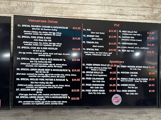 Read moreWent here for my daughter’s bday bc she wanted some boba. And we were in the area. This boba wasn’t the same as what we’re used to. Every flavor we tried which we ordered 3 different flavors between all of us, had a floral taste. We ordered pineapple, blueberry and raspberry. The fruit flavors weren’t very strong. Not sure if it’s the tea used or just the type. We may not be used to Vietnamese Boba. We ordered food as well. She’s picky so she only got the popcorn chicken and some white rice. She said it was a little mushy and still ate it but the popcorn chicken was good. I ordered the D1 bourbon chicken with noodles. It was good, large pieces of shrimp though they had that seafoody taste to them. I liked the bean sprouts in the veggies. Nothing I’m running back to order and we also ordered a pork sandwich for my son and he really liked it. We still plan on returning to try their cheesecakes and ice cream. Tried to give you the menu since we couldn’t find it anywhere before...