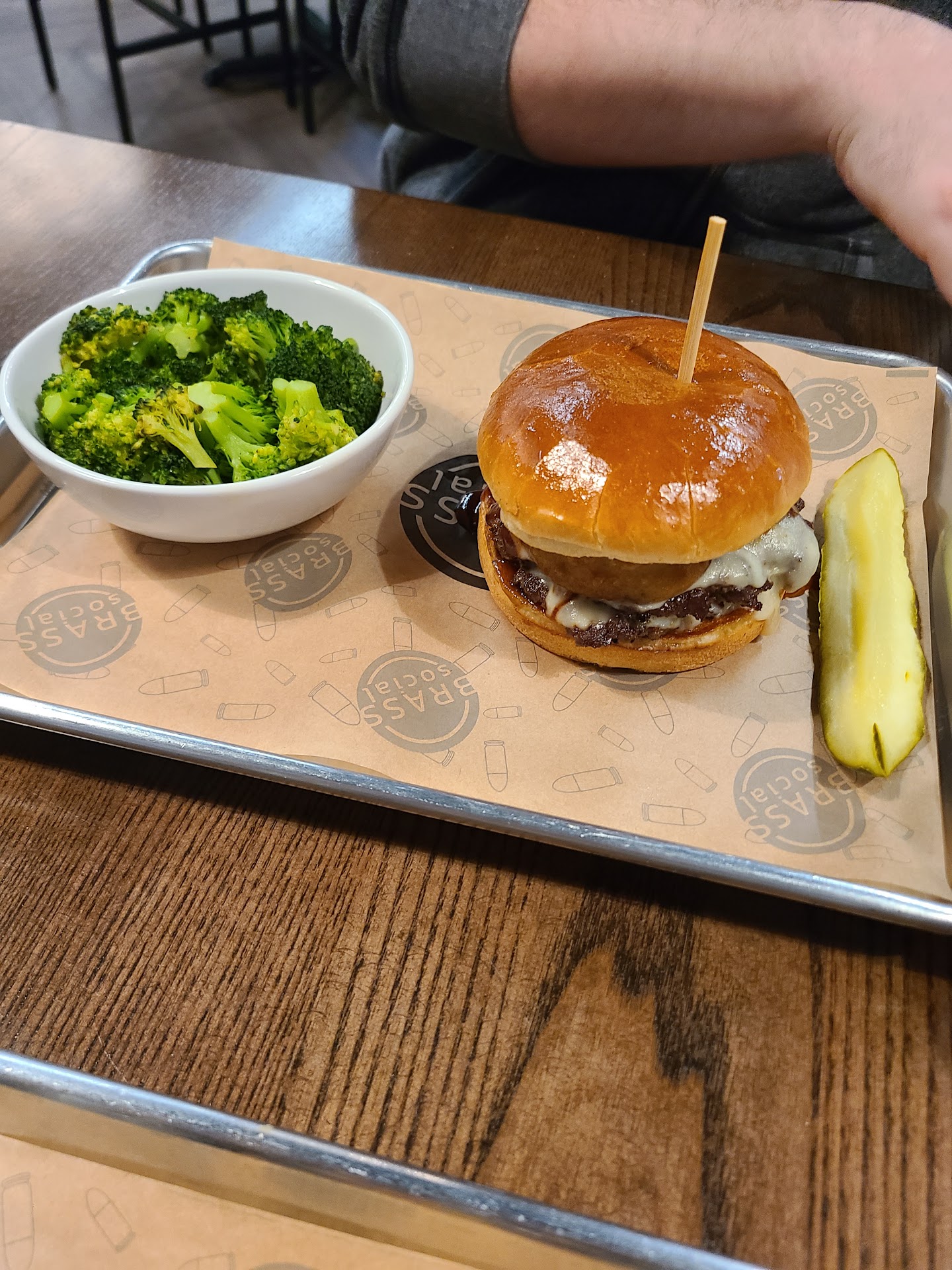 Read moreThis was our first time trying Brass Social and will definitely not be our last. We were recommended it from an employee at Next Level Range and were not disappointed. We went pretty late for us at 8 PM, and the restaurant had 4 other tables filled, not counting the bar. I was worried about them being too busy on a Saturday night, but I was pleasantly surprised. Our waitress was very nice and knowledgeable about the menu. We ended up ordering the Hermano Americano and The Ranch-Hand. I got fries with mine and my burger, and he got the lemon pepper broccoli with his. The Ranch-Hand had a nice balance of sweet and savory with juicy patties and crisp onion rings. My Hermano Americano had fresh toppings along with their Venezuelan parsley aioli sauce. I was nervous about the aioli, but the waitress assured me the sauce was not heavily herbal. It was SO good and pulled the rest of the burger together into a perfectly cohesive sandwich. I do want to try other dishes, but I could eat that burger every time I go. I highly recommend this restaurant to anyone that wants to try something different from a basic burger joint. We can't...