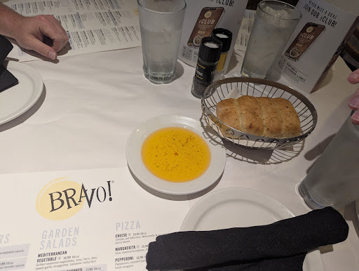The atmosphere: You can tell it had been somewhat impressive at one point, but now is looking tired, dirty, crumbling and rusty. Note to restaurants going with the open ceiling structure painted black: You need to clean this structure on occasion 😉 Our table was a large round table which fit us well. The table featured a white linen tablecloth, but they topped it off with sheets of white paper ( I guess to immolate an Italian eatery?) The papers kept shifting and were not conforming to the table edges. I had to bend and fold them so they weren't messing with food and drinks. We ordered an assortment of items. I and one of my sons had Chicken parm-eroni. The chicken was crisp and tasty. The pasta was cooked properly. That's where it stopped being good. The noodles were tossed with parmigiano and little else it seemed. They topped it with a tomato relish of some sort. It was totally insufficient to complement this Italian staple. I asked for a bowl of marinara to supplement. I and my son added it, but the marinara wasn't tasty itself, so I didn't eat but half. My oldest son ordered a cheese pizza. Can't screw that up right? Oh, yeah they did. It was grossly undercooked and was literally dripping in oil. Grabbing one piece and lifting it the piece just hung like wet drippy cardboard. Couldn't tell you if the taste was good because it was so unappealing nobody would attempt eating it. My fiancé requires gluten free. I asked the waitress twice for a gluten free menu and she finally returned to say "Oh yeah, anything here can be made gluten free but the lasagna. Wrong. The noodles? Perhaps. How about the sauces, the breading etc? No, they couldn't. The others meals were average.
