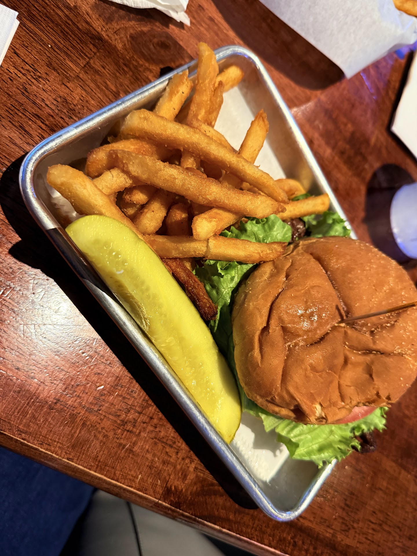 Read moreI had researched places to eat in Louisville while we were going for the weekend and this place caught my eye. I liked rhe variety on the menu and the stinky chips sounded great! So I bookmarked it as an option for dinner while there. Sunday night rolls around, it's 930 and we are starving. We decided to drive the 15 minutes to try this place and we were all so glad we did!! It's a sports bar, dinner.... The bar is bigger than the dining area and looked nice. We had our kids so we didn't go in. There were lots of TV's with different sports options to watch. The waitress was friendly and the food was amazing! The stinky chips rocked and I really recommend them!! My daughter and I both got the chicken strip dinner. We could have shared it! They were delicious! I make very good chicken strips myself and my kids and I are very particular about them and these ranked up there with mine so kudos! Lol It came with 2 sides, I got potato wedges that were just as good! Crispy outside and soft inside with great seasoning! And a side salad. It was small but the bleu cheese dressing was great! My 9 year old did the kids shrimp. They are good sized but he could eat double the amount they give you. (5) My husband had the Bourbon glazed salmon and green beans, minus the Bourbon Glaze. (he likes his salmon natural) Both were delicious! The salmon had great flavor and the green beans are cooked with bacon and had great flavors as well. The only thing bad I can say about our experience is about the shrimp because they are very spicy, which we didn't expect being on the kids menu. Other than that it was great and will be back on our next...