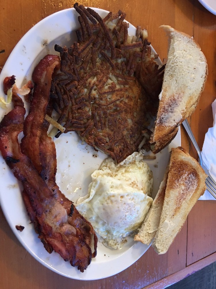 Now food: we've found it inconsistent, not to order, and each time we've been there we've had one order just wrong. Food tends to be over cooked or under cooked and items tend to be added at random- melted slices of Swiss cheese was added to the top of my corn beef hash thought it's not listed on the menu. I'd even be good with it if it added to the taste.
