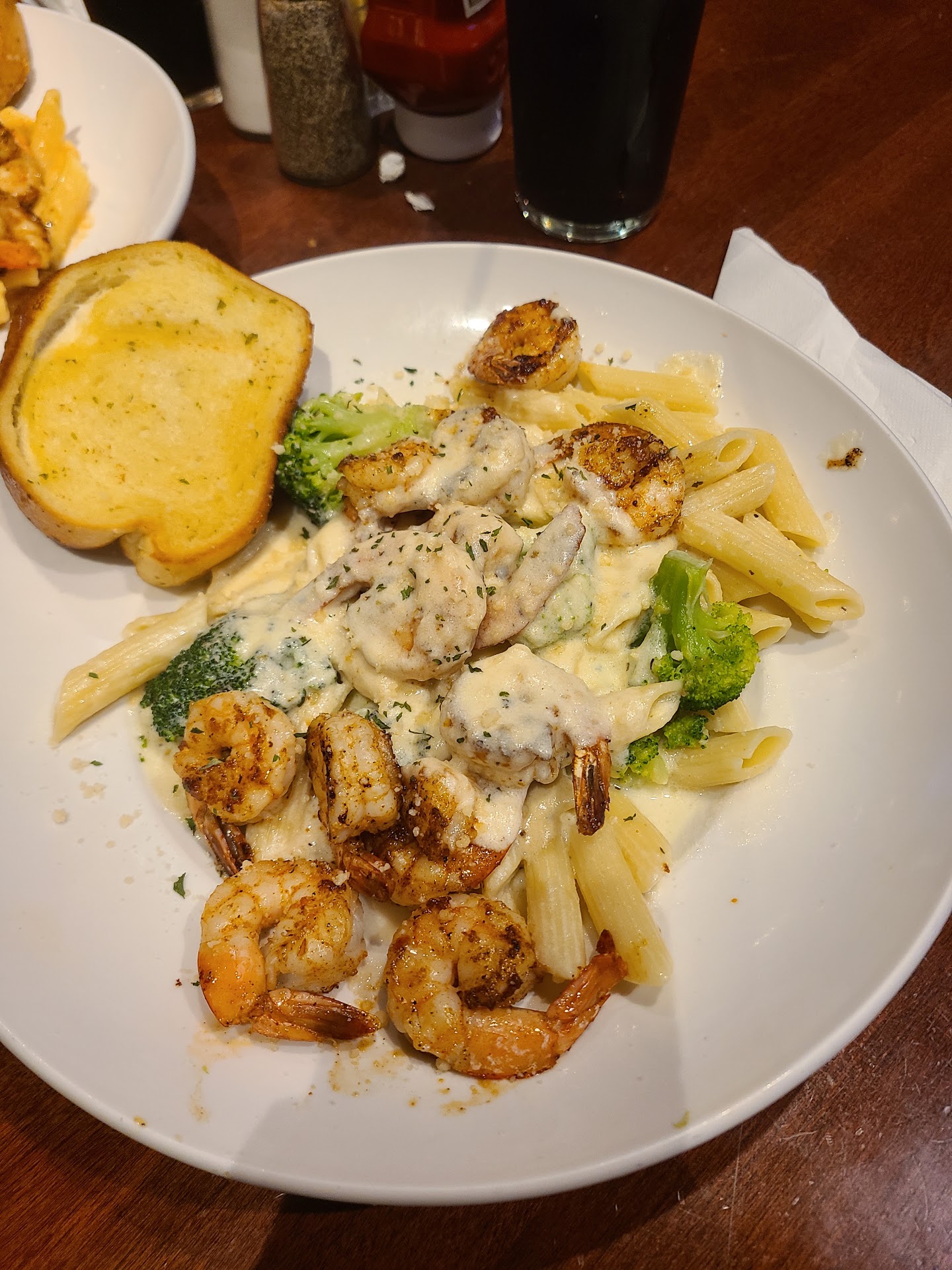 2 of us had the child’s Chicken, which came with 3 very plump Tenders and a side. My husband chose the Lemon Pepper Chicken on Rice and Broccoli Casserole. It was a beautiful cut of chicken, and he said it was very delicious. Several of the men had ribs and very proudly left with clean shirts! There was a Chicken Tender Meal, a grilled Pork Chop, New Orleans Pasta which had Shrimp, chicken, smoked sausage, peppers, onions and penne pasta in a spicy homemade Cajun Alfredo Sauce, a Sirloin, two ladies had the Country Fried Chicken on a Slice of Texas Toast. The last table that I went to had gotten their entrees first and there wasn’t much left to take pictures of!