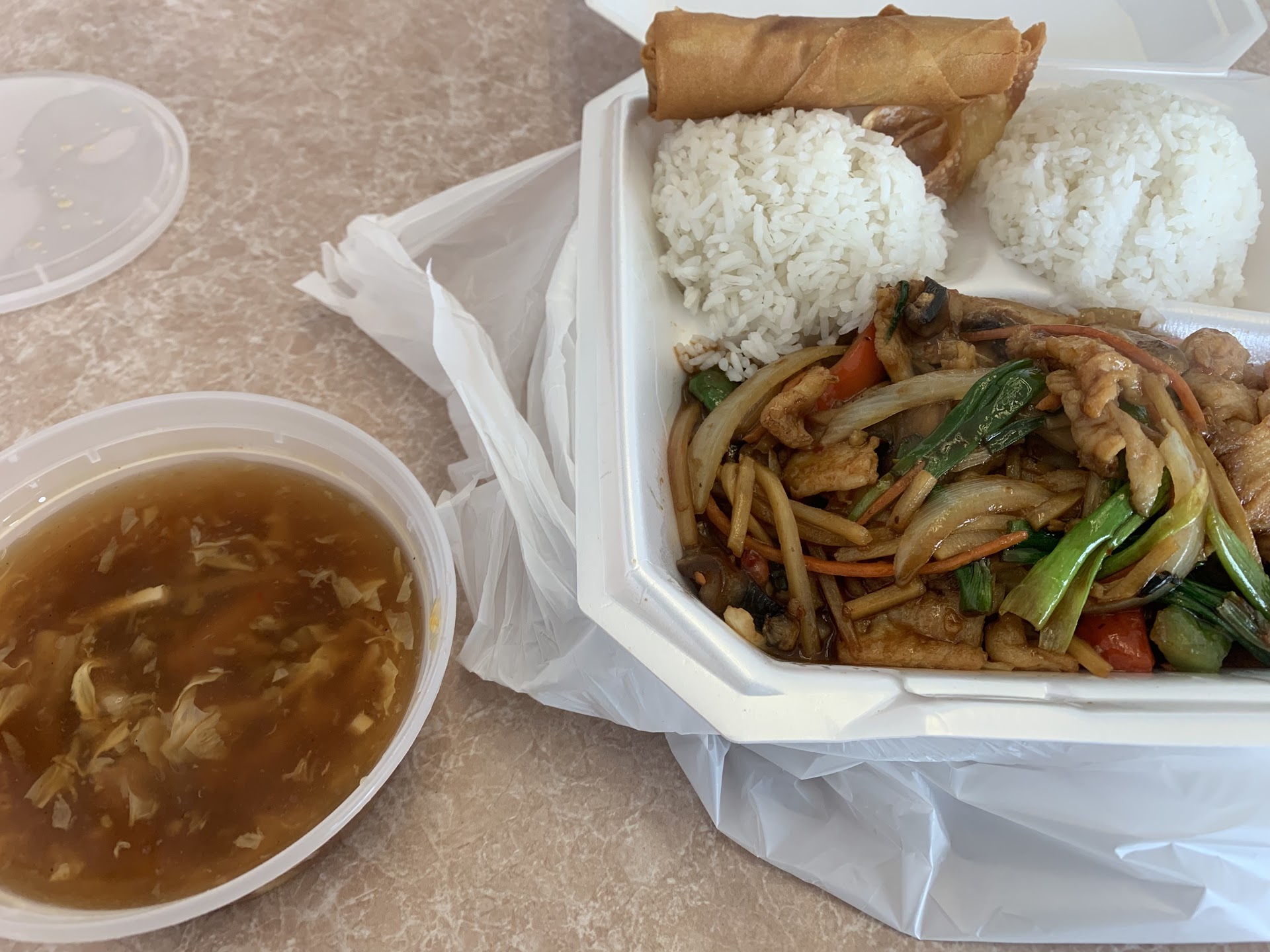 Chef King fell flat on their face with this. First off, the sauce was gray. Yes, that is not a typo; gray. It smelled so powerfully of cheap vinegar that I thought they had spilled my grandmother's home brew vinegar window cleaner on the chicken by mistake. I ate 2 pieces, regretfully, and was not shocked to find stringy chicken and a sauce that stuck to my teeth like milk duds. And that was promptly the end of tha meal.