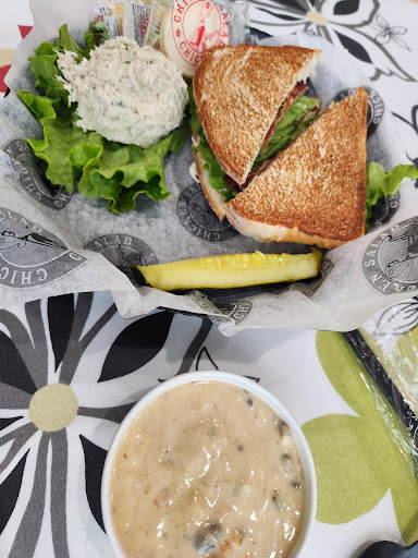 First impressions are everything! When I walked in, no one said hello or welcome in. Many employees had hair hanging down with no ponytails or hair nets and the owner or manager has super long hair and was behind the prep counter. When I walked in, I overheard her say something like âwell, to be fair, Stephanie isnât responsible for everythingâ and we made eye contact, I gave her a grin and she gave nothing back. Then she came out front with a binder opened and said â who do I have to talk to?â Iâm assuming she was doing an interview with the lady she sat in a booth with. She definitely didnât display the cheerful smile she has in all her Chicken Salad Chick Facebook photos.
