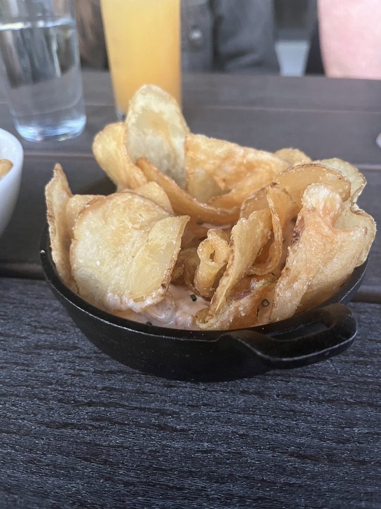I split a pimento cheese and chips appetizer with one of the other bridesmaids to start and it was definitely the low point food-wise. The chips were a little soggy/chewy, most were portioned directly on top of the pimento cheese (which worsened the sogginess), and the pimento cheese itself was super runny instead of chunky, oddly on the sweeter side, and just didn't taste much like pimento cheese. It reminded me of a slightly cheesy mayo-ketchup sauce like you'd dip fries in. They did let us get some extra chips to go with it so that was nice.