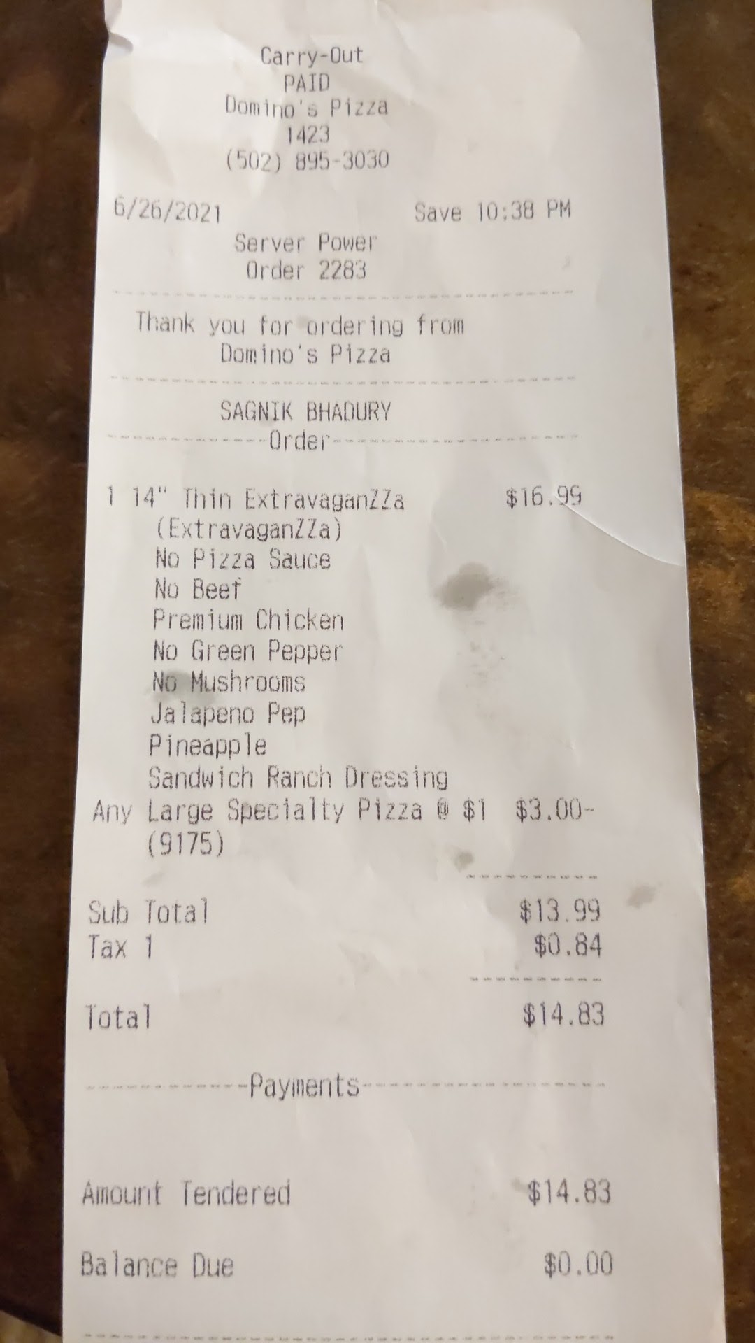 Read moreI ordered a pizza online at 11:50 p.m. on 06/16/2024. The Domino's store promptly processed my online payment. The online status bar also indicated my order was received and my pizza was being made. At 11:59 the status bar showed the pizza still wasn't ready. I recieved a text stating my order would be ready for pickup between 12:09 a.m. to 12:19 a.m. So, before driving to the store I checked the online status bar one more time (and its a good thing I did!). I checked the online status bar at approximately 12:25 a.m. and discovered they had cancelled my order! They didn't even call me to tell me why they were cancelling my order!! Instead, they just sent me a text at 12:07 a.m. stating my order was canceled with no explanation as to why they canceled it. I fully expected to receive my pizza and was eagerly anticipating eating it. So, it was a very unpleasant surprise to discover they had canceled my order without any explanation! I am a former Customer Service Manager of the Franklin Covey corporation. So, I value good customer service. This was very poor customer service! You should not mistreat a customer who is a frequent repeat customer (like myself). I have contacted the national office to remedy this poor customer service so that it hopefully does not happen to anyone else. If I could have given this store a 1/2 star rating for this instance of poor service, I would have. I'm not sure what happened with this store that caused them to cancel my order without explanation (especially after they had sent me a text indicating my pizza would be ready by 12:19 a.m.). Normally, this store offers good customer service. But not this time. I even tried calling the store several times, but they just let it go to voice mail. Anyway, I hope my report will prevent them from cancelling anyone else's order without an...