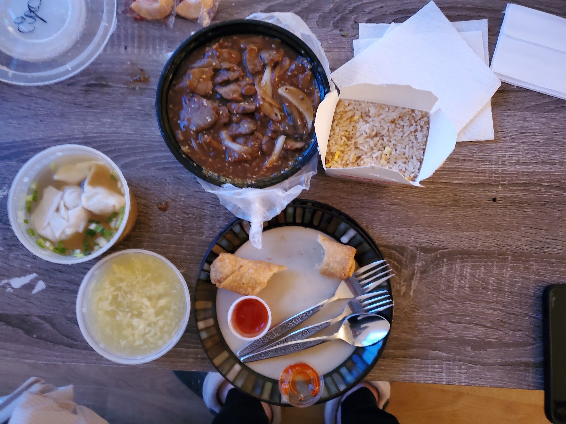 Read moreOrdered takeout: sizzling beef (with plain fried rice and egg drop soup), a small wonton soup, and two egg rolls. Overall, I thought everything tasted very good. Definitely note that the sizzling beef is pretty spicy, almost too much for me. But, the taste was great and tender. The fried rice wasn't anything special, but the egg rolls (at $1 each) were a great deal, and the closest thing to true (North Eastern) egg rolls I've seen out here! The soups were also good and cheap. The egg drop soup that came with the sizzling beef was in a comically small container, but if you want more soup you can always put out the extra $2 haha
