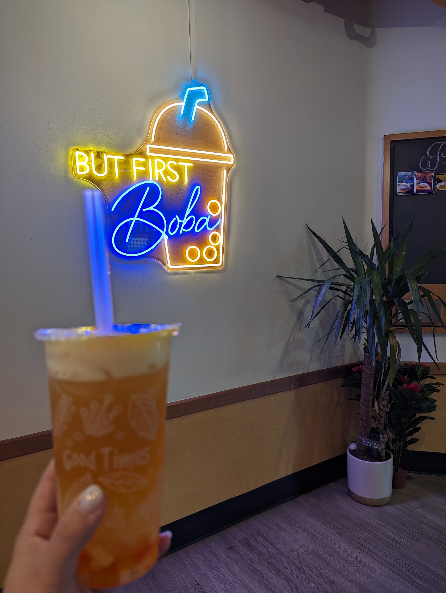 Good flavors, nice fresh chewy boba, cute cups, cute little seating area, fast service, great people, good value. Lots of boba!