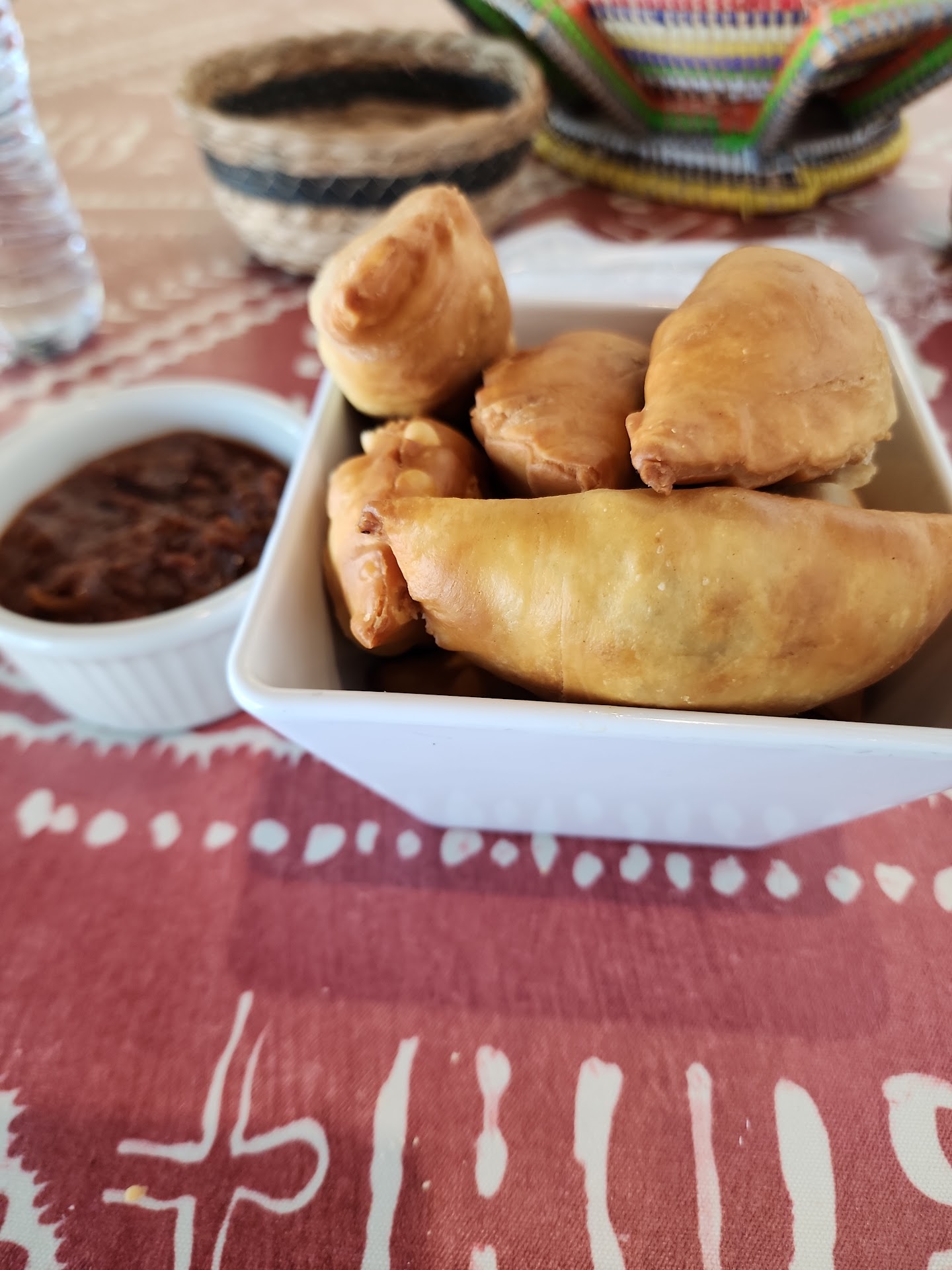 The food was amazing. As I mentioned, this place is very authentic. The beef pie was seasoned not for spice but for flavor. A small bowl accompanied the mini pies full of peppers and onions with season blend. Again, it's not spicy, just flavor. There's no drink fountain. You get bottled water. I couldn't see what sodas they had. The food came out steaming hot, and that was the only problem because I was too tempted to just jump in.