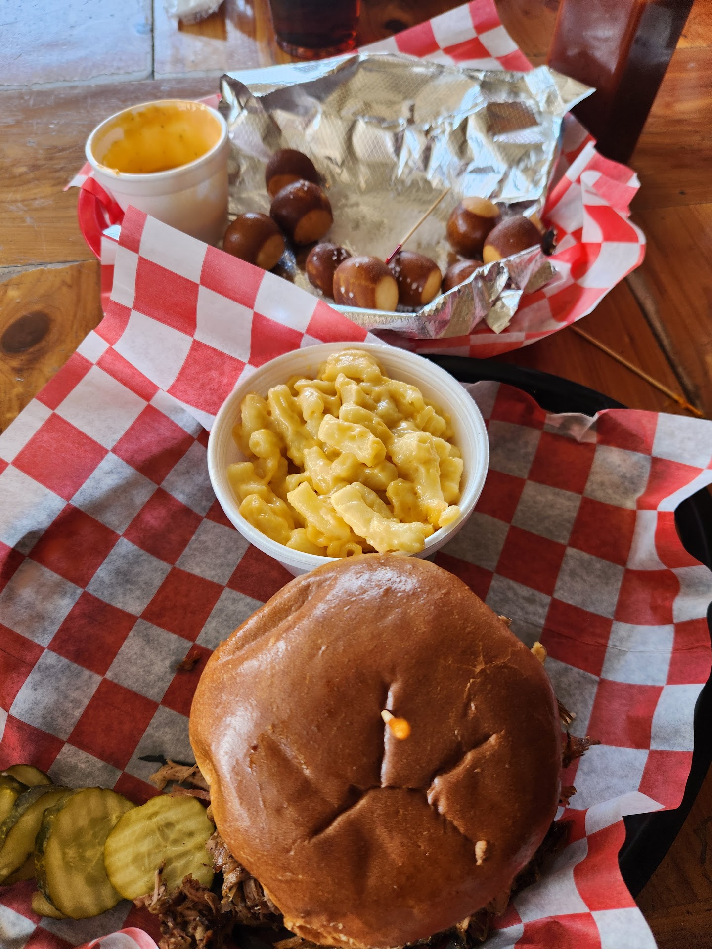 Two people in our party got pulled pork sandwiches, which they were pleased with. It's not an easy thing to mess up. Some of the other reviews knock the brisket. It isn't the best you will ever have, but it's better than Feast and makes a decent sandwich. We also ordered a rack of ribs which were significantly overcooked, which other reviewers have mentioned (they are apparently not getting the memo). I would not recommend them for anyone. The mac and cheese is very bad. Most certainly don't get it. Overall, the food was just mediocre. Louisville, in my experience here, does not have a strong barbecue culture. Places like this pass as good eateries but wouldn't survive long in places that had more competition and a higher standard. Even in Owensboro, this place probably wouldn't have lasted.