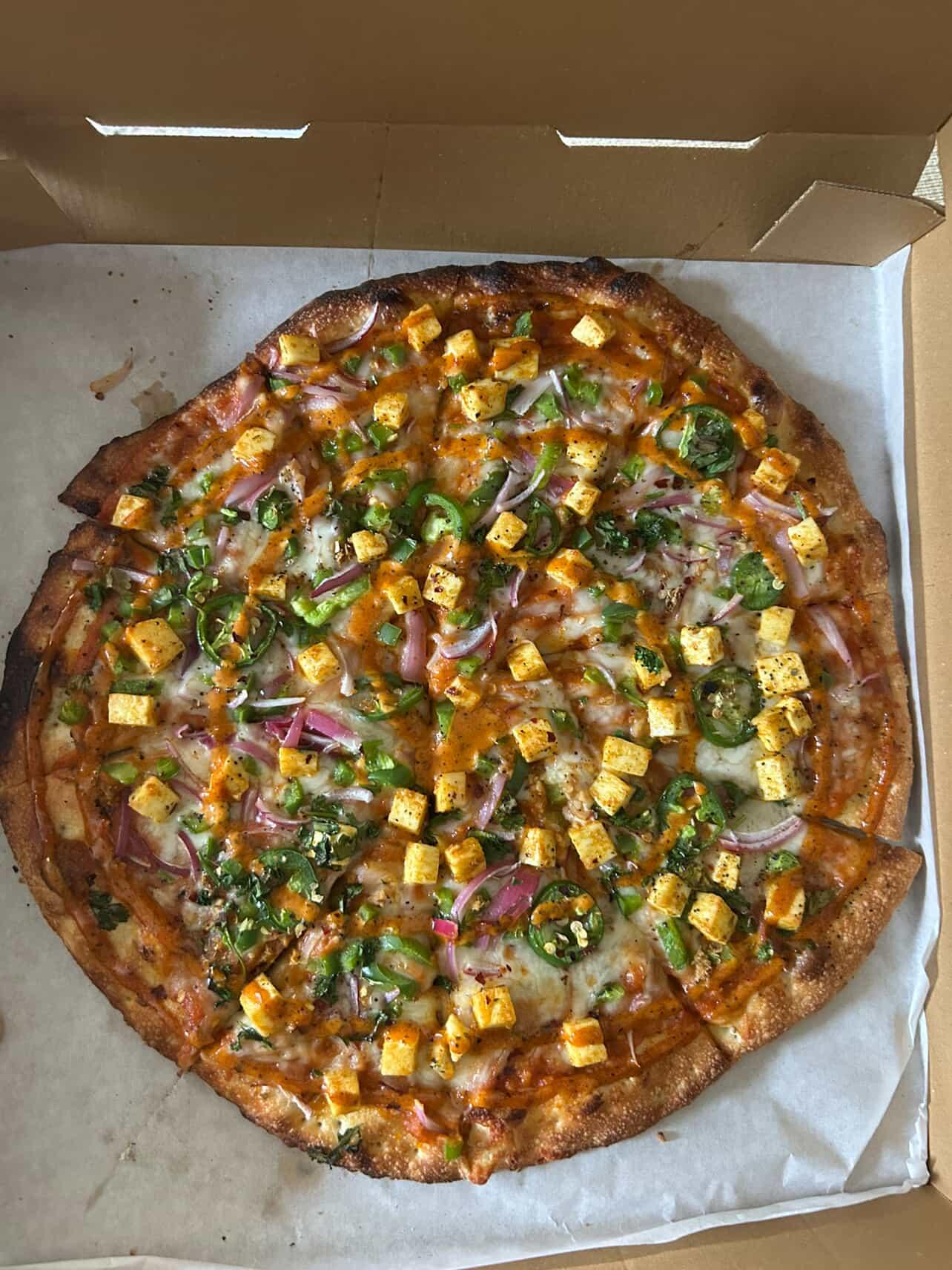 I found out about this Indian-owned pizza joint a few months back but didn't have the chance to try it until last night (4.19.25). My girlfriend is vegetarian, I am not, so it can sometimes be difficult to find something we can share for dinner. We got the Paneer Tikka Masala Pizza, and wow. I've only had a small amount of Indian food in the past (excluding frozen meals), so I am not super familiar with all the different flavors and unique items. I had never had Paneer, and wow, as a topping it is wonderful. Fresh jalapenos and red onions, a wonderful smooth tikka sauce swirled on top after baking. Even the garnish added a ton of flavor. This is easily among the best pizza I have had in Louisville just based off this one experience. I will be back, and at $15 for a 14" pizza, this is definitely going to be in the...
