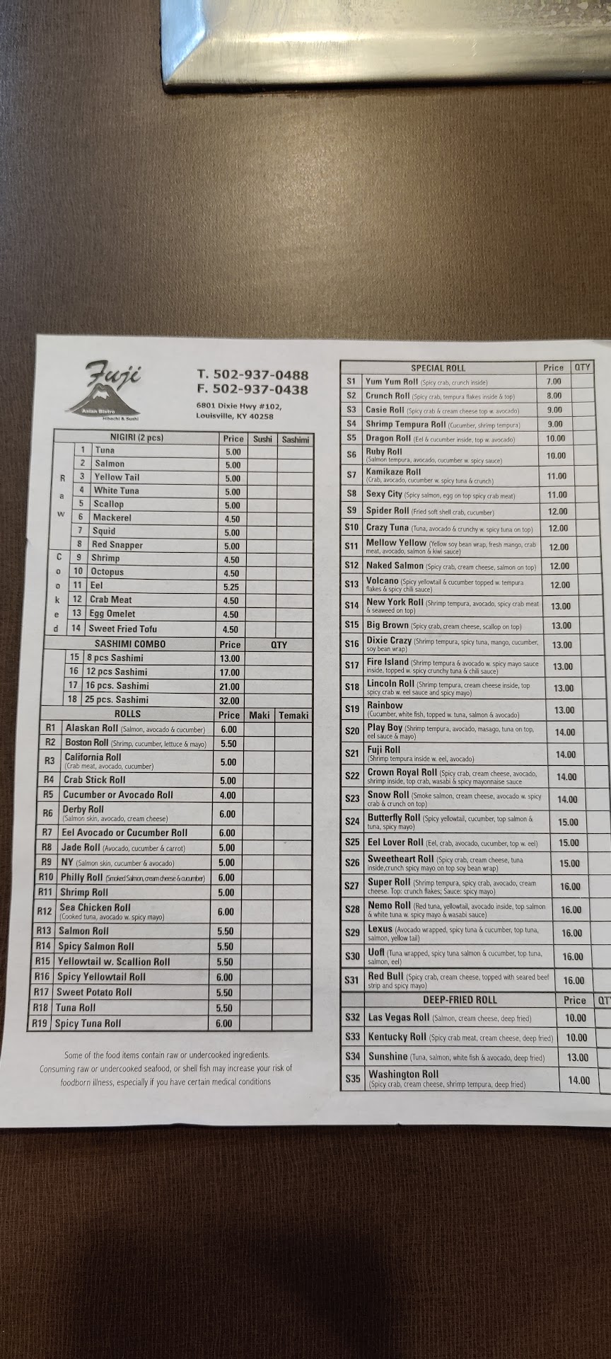 Read moreSo aggravated right now! My husband Jim has throat cancer and just had surgery to remove his voicebox and tongue. Jim felt so good today that he wanted to take his sister and brother-in-law out for dinner before they went back to Ohio as a thank-you for helping while in hospital. He picked Fuji Japanese on Dixie. He can not eat or drink but wanted to sit with all of us. I told the waiter that when we went to sit. He said he had to charge us a sitting fee for Jim. $9.00!! Now remember, he cant even drink water much else eat. All of us got up andleft. The restaurant was empty lol. I understand there are policies but.....it ain't like he can steal off another plate. Lol he can't move his TONGUE! The manager asked what was wrong andI told her but she never said anything about us stayingnor did sid she say it was ok. So sad. They lost our 200 bill and our...