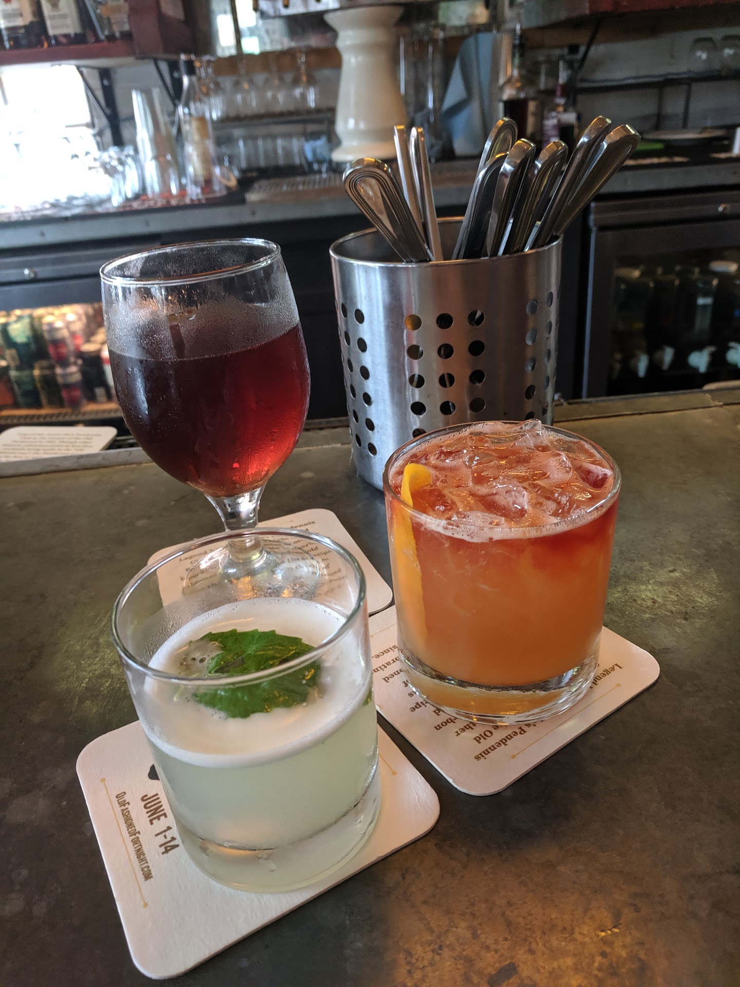 We each had one of their custom bourbon cocktails, while a bit on the sweet side, were super tasty. We split two of their local hams, house made pickles, a Caesar salad and the pepperoni pizza. The hams tasted fresh and paired well with the house made sauces and bread that they came with. As passers-by we found being able to sample the local products was a treat. The pickles were tart, crunchy and refreshing (seriously, you should try them!). We loved the Caesar salad, the dressing was spot on and the fried kale and anchovies showed a lot of thought had gone into it. The Neapolitan style pizza had a great crust, crispy yet chewy, with some nice char on it—as it should have. The local pepperoni they put on it was delightful and the milled tomato sauce had a nice velvetiness. The only complaints were a lack of spiciness despite the pizza having fresh jalapeño and the milled sauce tasted a bit tinny.