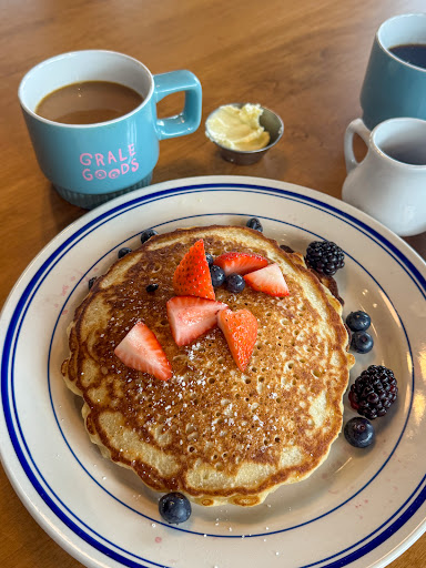 Oh I am sooo happy this place is open. I’ve yet to venture over to the sister breakfast restaurant, Gralehaus, but it seems I’m not the only one who appreciates the avcessibility of this new Grale Goods format. Line was out the door and tables were packed when we visited on a rainy Saturday morning, but counter service was pretty quick and tables cleared fast. My favorite part is the large community table space they have. We got the sausage roll and buckwheat pancakes and both were 10/10. Reasonably priced and filling. The sausage roll was buttery and perfectly spiced. For the buckwheat pancakes I’m unsure if it was the pancakes themselves or the butter that comes on the side, but they were a tad bit too salty, although still definitely crushable. I really liked the free 2 hour parking, just make sure you scan the QR code at the counter to opt in! Overall really impressed with this place and can’t wait...