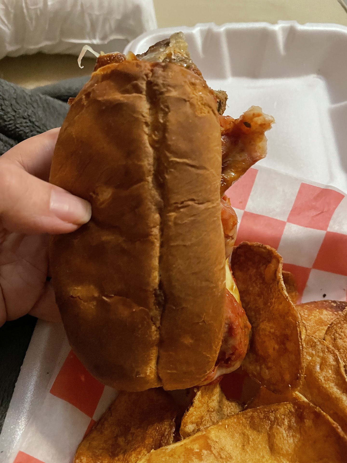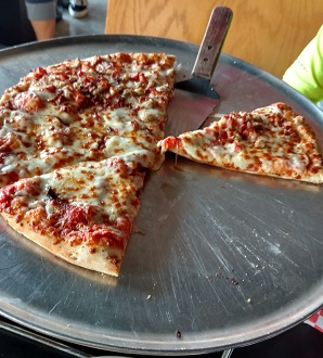 This place gets 2 stars cause at least we didn't have to wait for a table, but after eating there I know why. I've waited tables and never have I ever brought everyone's food out except one person and made that person wait for over 15 mins to get their very simple item. We ordered 2 pizzas and an order of boneless wings for our daughter. Pizzas came and she sat waiting for 15 mins for her wings. When the wings did show up they we mushy as were her fries like they weren't done all the way. And we were still charged full price. The pizza wasn't good either. We got a BBQ chicken pizza on thin crust and it was damn near burnt and super dry like it didn't have enough sauce, our son and his friend ordered a cheese pizza half sausage on regular crust and it looked good and they seemed happy with it. I took a bite out of one of their pieces and I'm just not impressed with the flavor of anything at this place. Good thing they serve beer cause I don't know how they would stay...