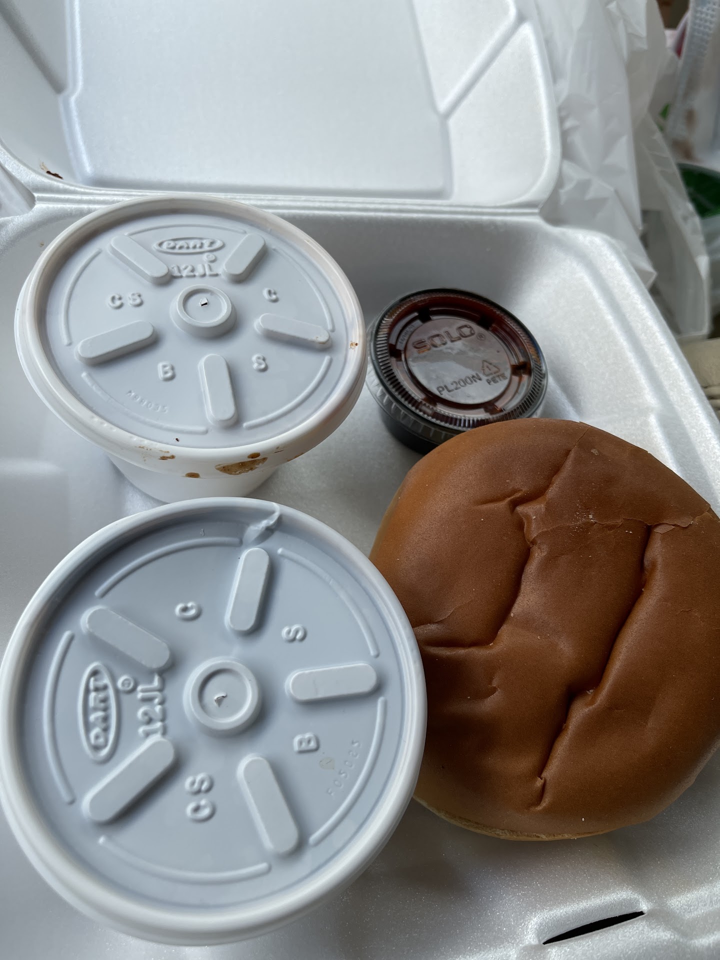 I just stood in there for 45 minutes to get a pulled pork sandwich and baked beans. As you can see both are in containers. If you are going to serve like this then it should only take 2-5 minutes at the most. You just lost a customer today. That review was for the wait. Now, the pork that I received was VERY DRY the extra bbq sauce could not save it. I have never been to a bbq restaurant that doesn’t serve sides with the meals (onions, peppers, or pickles) FREE. I threw most in the trash my $14.00 down the drain. It should not matter the day of the week. I saw at least 6 people working and I know it takes more but they have to step their game up and work!!! On the bun or not the pulled pork should not have been served and the bun was one step from being in the trash(as you can tell from the picture). But, all in all I’m not a fan of the food I received or the customer service. So, off to find me a new BBQ RESTAURANT!!!