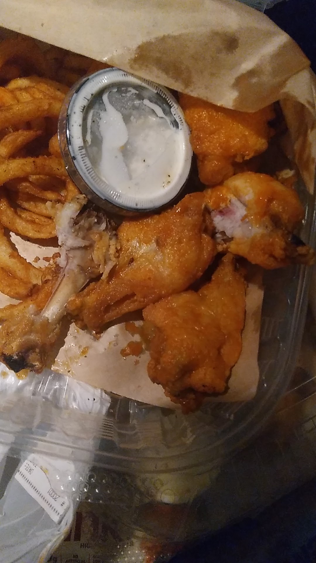 Ordered 11 wing meal. hardly any sauce. also the wings were clearly out of a bag like frozen generic brand wings. 50% of the wings were 1/2 the size of a chicken nugget. fries were cold and mushy like they were cooked hours prior and left out. applebees out performs these wings if that tells you anything. which is a shame for a place that has "wings"...