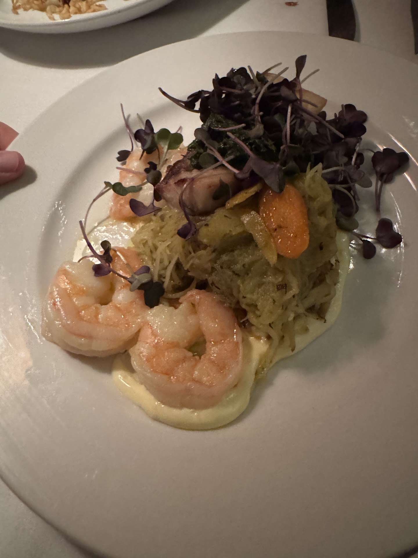 We arrived about 15min early for our reservation & were seated immediately. Our first dish: spicy fried oysters. While my hubs bit into a piece of shell (ouch) we still both really liked the dish. Next I had the shrimp & grits (app) as my main. It was perfect and a unique take that I'll likely find myself craving. I'll agree with others, probably the best shrimp & grits I've had to date! My dessert was the creme caramel with a perfectly executed sugar shell. I did take a bite of each of my husband's dishes - his salmon was excellent- cooked to a tender medium with a crispy coating & his raspberry sorbet was a...