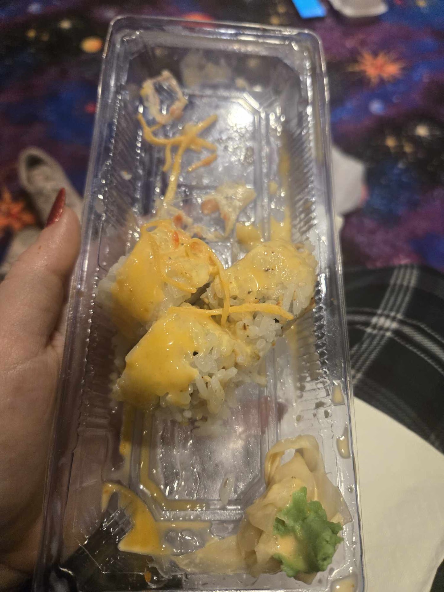 Read moreLet me start this off by saying how excited me and my friend was to get this food and eat it... With that being said we spent over a hundred dollars after placing our order. When our order was delivered we noticed that the two sushi rolls we ordered was not in the bag. There was 8 yum yum sauces ordered and only 3 came, after paying for each. The sauce that did come was NOT edible it watered down and tasted nothing like yum yum sauce. I ate 4 bites of my food and threw everything else away. Only thing on my friends plate that was semi decent was the chicken. VERY DISAPPOINTING!! Don't waste your money or time with...
