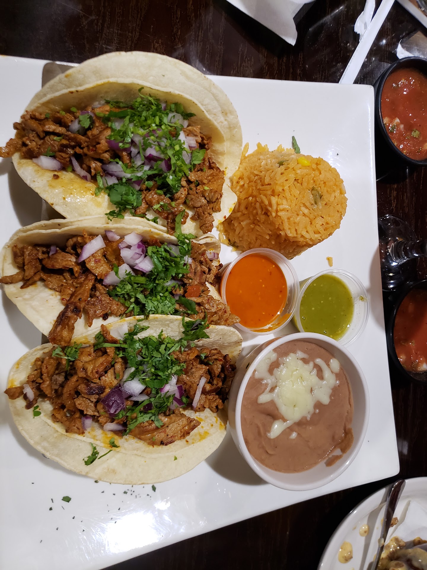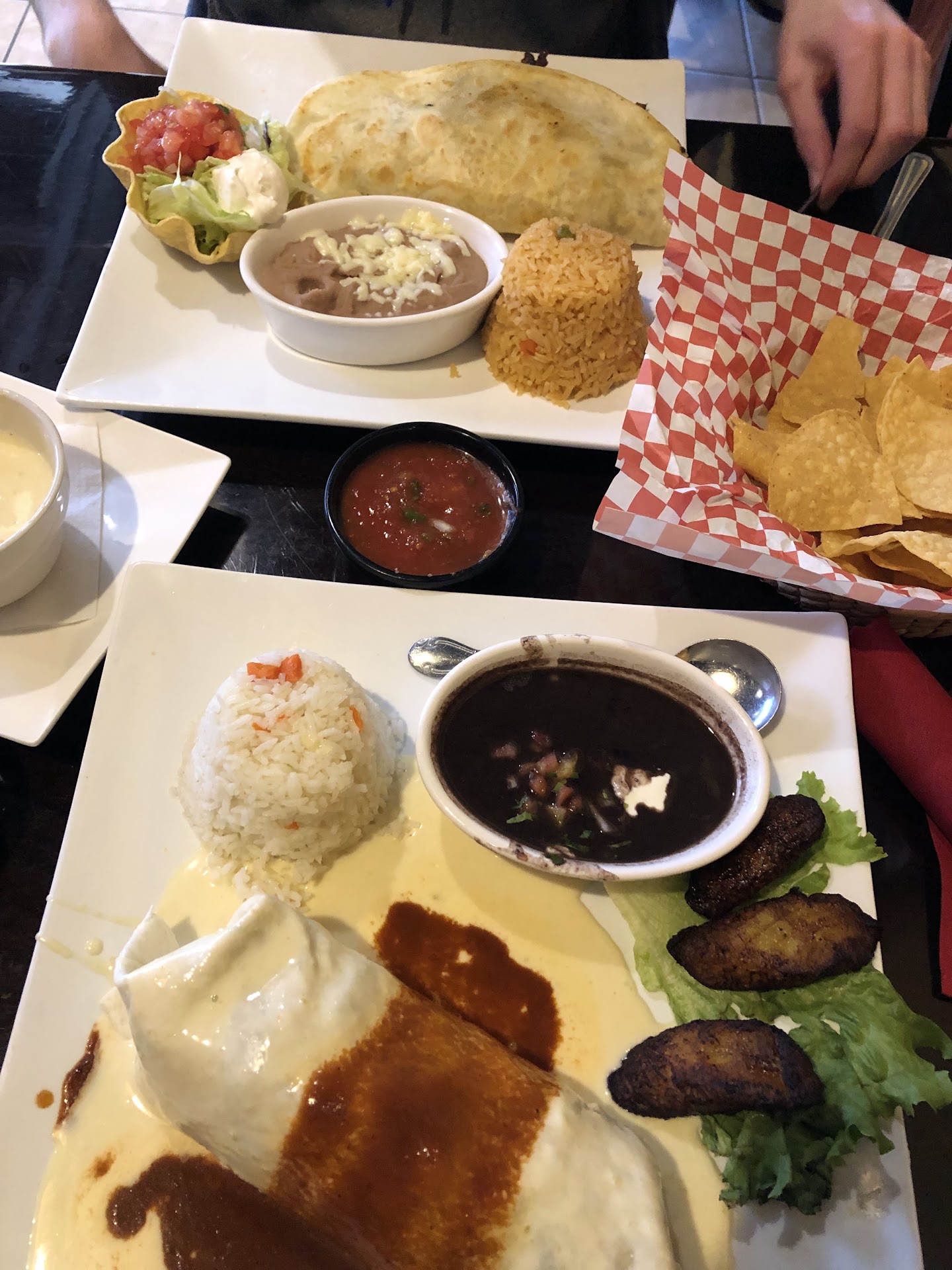 Read moreLet's start out by saying the swirl margarita is great and strong like ox. The plantain's might be my favorite and I like the salsa even though my daughter thinks it's too spicy ( probably why I like it) not too spicy if you like heat. The rest of the menu is just mediocre. There is a different flavor profile than most Latin restaurant but I think they are a little overpriced. If you ask for anything; you will be charged. I had carnitas tacos and asked for a tomatilla sauce. Which is standard, even asked when I ordered if it came with and was told it would. Still had to ask for it when food came. Was brought out a small container with about a tablespoon worth. Not enough for my three tacos and I don't use sauce heavily. Had to ask for another cup again brought about a tablespoon to me. When check came I was charged twice for a tablespoon at $2 each. I don't usually write a bad review or I guess sort of bad review but the pricing and charging at this restaurant blows, thank God their margarita and...