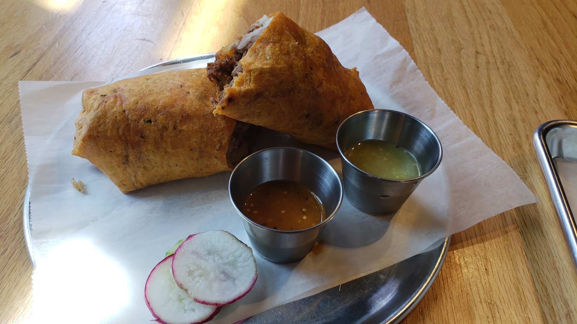 Read moreIt was a ghost town when we arrived just after 6. Literally one guy eating there. That should have been the first clue. Very limited menu to choose from . We got guacamole which was very bland with just avocado no tomatoes or onions and very light seasoning if any. The chips were crisp but unsalted. We both ordered burritos. One chicken and one carne asada . The meat was hard and dry and the burritos had nothing but meat ,cheese, beans and rice. They were also weirdly pressed like a panini . Nothing comes on the side unless you pay extra. I had the berry margarita which was small but tasty and cost 12$ each . Yikes. Our bill for two was over 70$. Which would have been ok if the food had been good . Thumbs down overall for the panini burrito and spendy drinks. The 5 star reviews must be from friends or relatives. As to the owners response . We were not told by the server what the burritos were like . In fact we were told absolutely nothing about the food at all . We ate some of it because we were hungry and basically felt uncomfortable there. They were terrible burritos to be honest and the cold sauces on the side were strange . There was nothing untrue about this review all was...