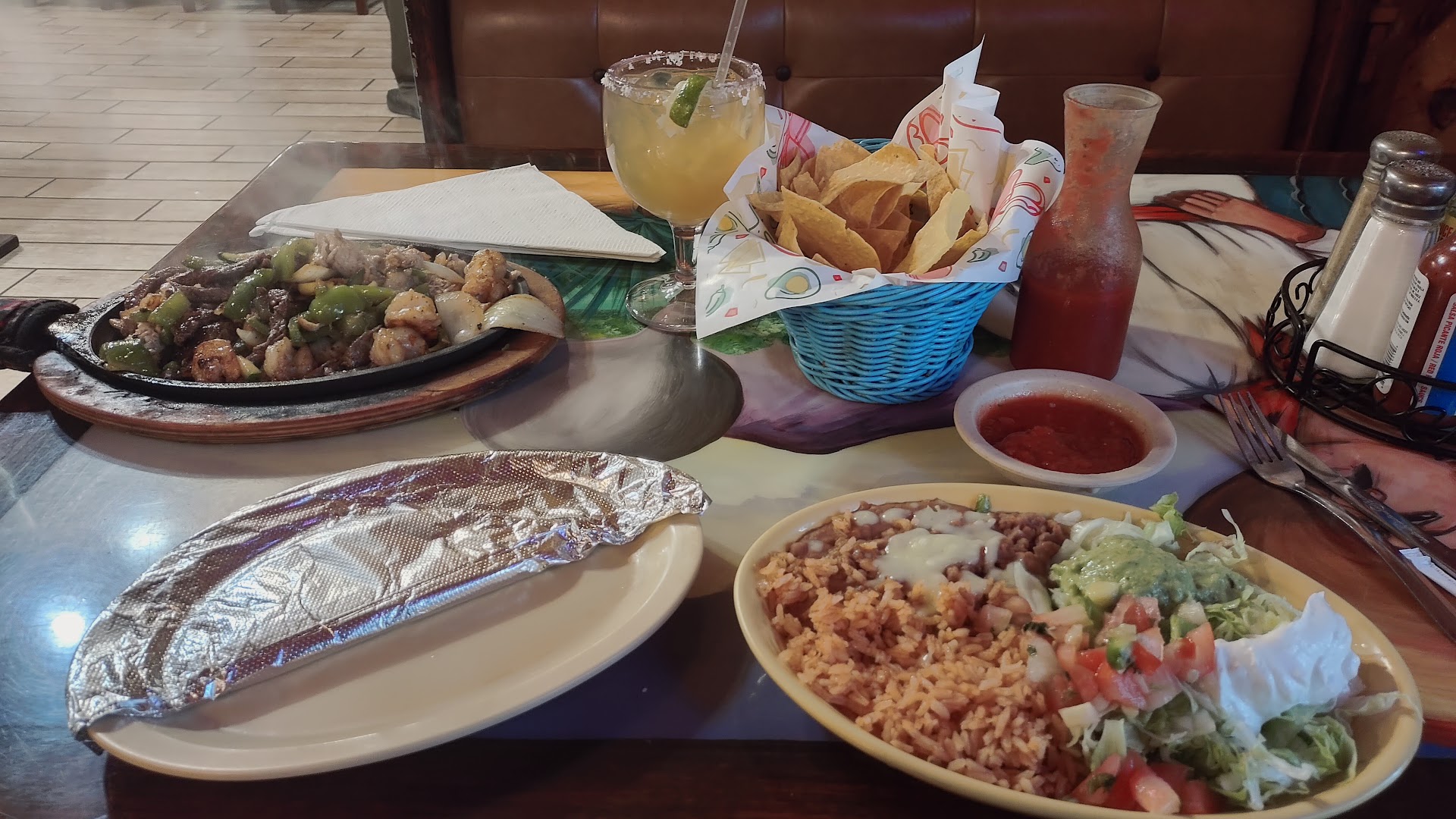 This restaurant has an authentic and great atmosphere, it's too bad the service is horrible. Been here a handful of times while in town and it's the same every time. Nobody greets you when you walk in, they keep on doing what they're doing for several minutes until a waitress finally seats you without a "welcome" or "hello". Food is ok, not top quality but tastes good except you should expect to wait 40 mins+ for your food. Thank goodness they offer the biggest basket of chips w/ salsa from the start. They won't ask you if everything is ok once you've received your food, but they'll be sure to keep your alcoholic drink filled until they hand you the check. There is so much room for improvement in service with this...