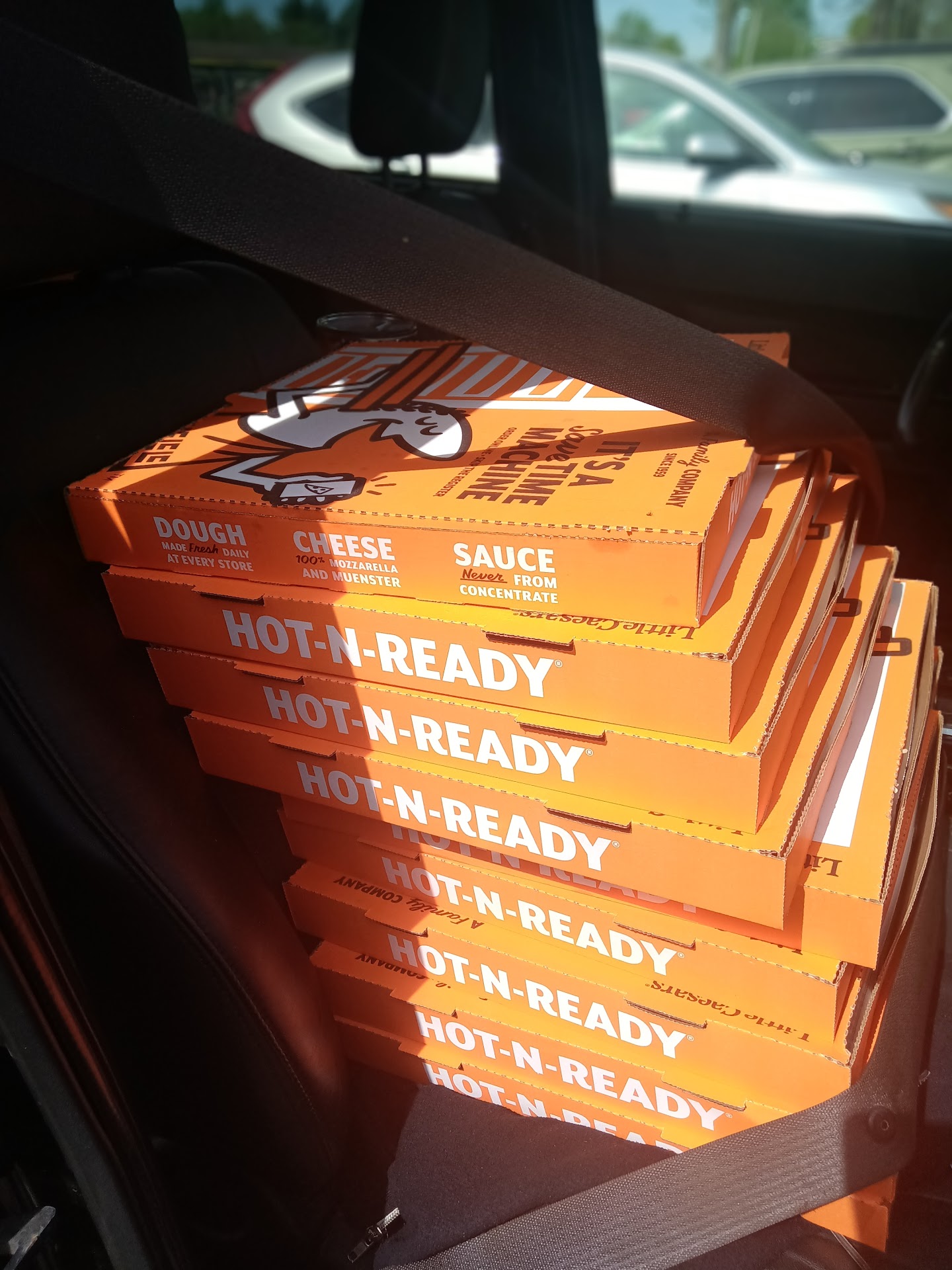 I'm usually pretty generous with my reviews, but if I could give this place zero stars; I would!!!! I went there last night after placing an order online. Waited roughly an hour, after watching multiple people get their food before me. I asked about my order twice and was completely dismissed by the front desk lady; even though I told her I received an email saying my food was ready. She kept saying it was in the online order station....but it wasn't and I kept telling her this. I was finally able to speak with another worker who was able to locate my order in the back.....where it had just been sitting there. At this point I'm furious, but I have kids at home that need to eat and it's nearly 8pm. On my way home the wings container opens up (because the lid isn't placed on right) and spills all over my car!!! I call the establishment and tell them about the situation and request a refund. I was told I couldn't get a refund unless I bring the food back up there. I explain to the man that I'd already thrown away the wings and how my passenger seat was now smothered in garlic and parmesan. Their customer service is down right HORRIBLE!! They weren't even busy when I got there and my kids still had to eat cold pizza. I don't expect perfection and I'm a pretty patient and easy going person....but this was enough to make me NEVER want to go to another Ceasers again. I'd much rather pay more and get Papa John's or Pizza Hut. At least with them I don't have to worry about parmesan and garlic all over my car.