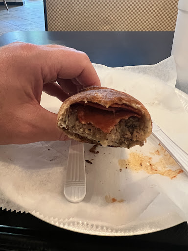 First chance, I tried the meatball sandwich. It was like eating a pizza crust football with 4 meatballs and a little sauce inside. The meatballs had a decent enough flavor, NOT enough filling at all. I came back from my lunch break feeling like I had just been working overtime by eating that thing.
