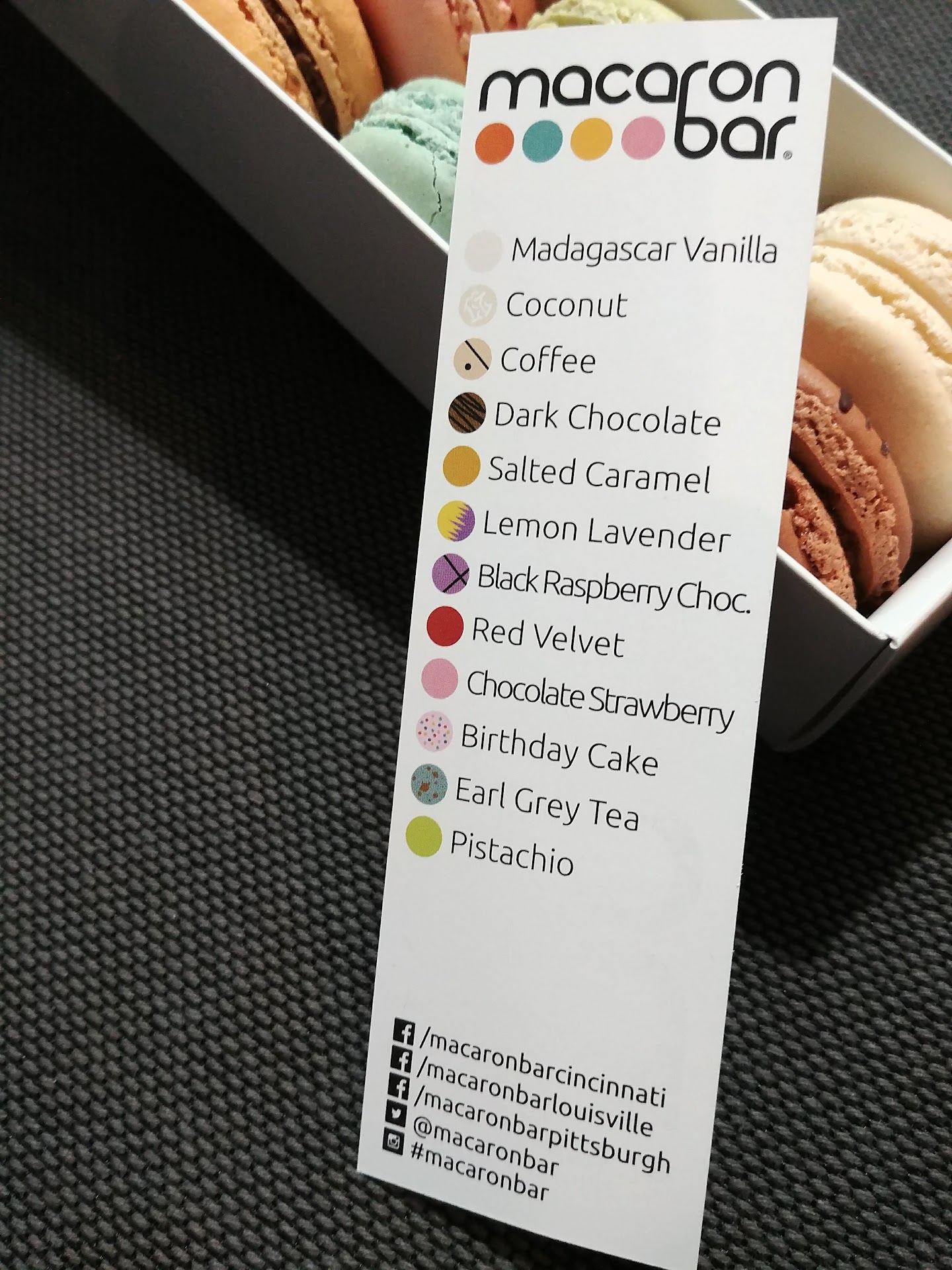 Read moreThe macrons were really good. I bought 12 cookies, which was about $25. The service wasn't great. I mentioned it was my first time in, how much I love macrons and that it was my birthday. After I got home I realized they have a frequent buyer card, and that they give you a macaron for your birthday. He didn't tell me about the frequent buyer card and he didn't offer a macaron. Even if he had said, "hey if you sign up for the program you get a free macaron next year" I would have been pleased. In reality though, he could have given away a 2 dollar cookie and looked like a hero, but...