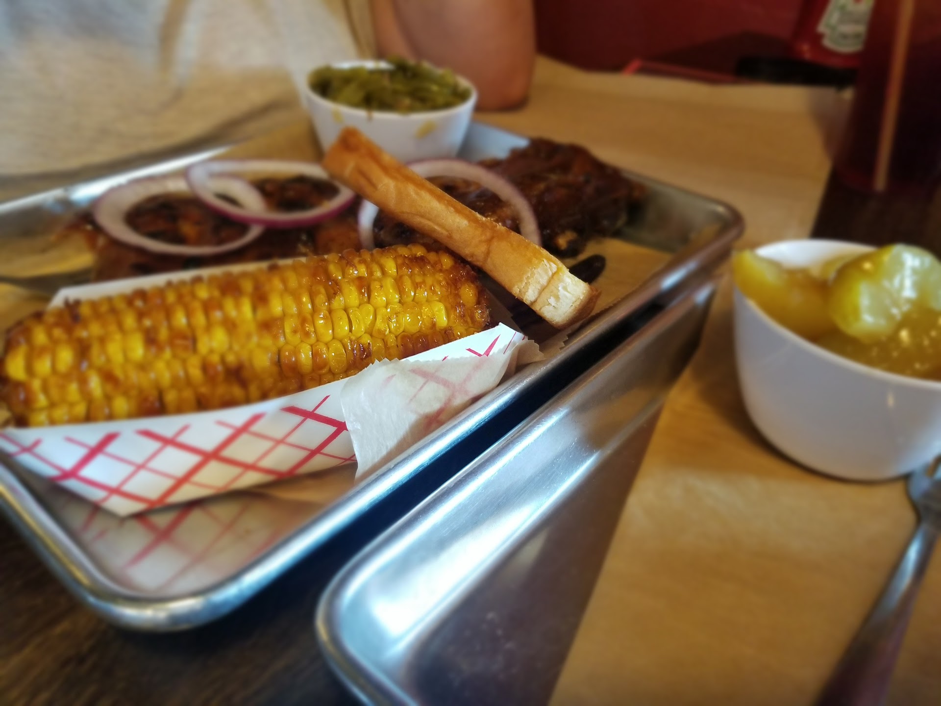 I made my way to my table. When Cindy came by to ask if I needed anything, I asked for a bottle of their spicy red BBQ sauce, she brought that quickly.