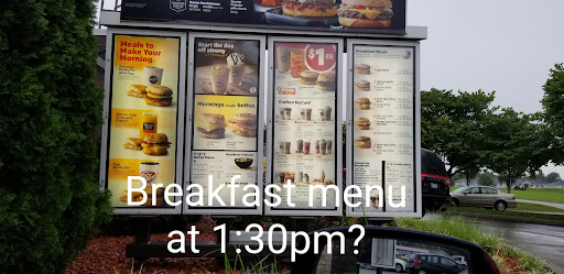 Read moreThis is the worst McDonald's I've ever been to. They always mess up the order, even if it's just one drink. Today, I ordered 2 large sweet teas - no ice, a medium coke, and 3 hot fudge sundaes. When I pulled up to the window, the lady gave me 2 drinks and said have a nice day. I told her I also got a medium coke and 3 sundaes. She handed me a bag of food. I said again, I got a Coke and 3 sundaes. She hands me the sundaes and said what else? I said a Coke. I didn't get the nuts with the sundaes or spoons and she didn't offer a drink carrier so one of my sundaes tipped over and spilled in my car. Also, the teas I ordered that were not supposed to have ice in them were packed full of ice and I'm pretty sure were half water because they were very pale and didn't even taste like tea. The last time I went there I ordered a large vanilla iced coffee with extra espresso. Not only did they not add the extra espresso, I'm pretty sure they didn't put coffee in it at all. I got sweetened vanilla milk. I asked my mom to taste it to make sure I wasn't crazy and she agreed there was no coffee in it. The last time I bought happy meals they left out the sauce for the nuggets, their yogurts, and drinks. I'm done with this place. The hassle isn't worth the convenience of being right...