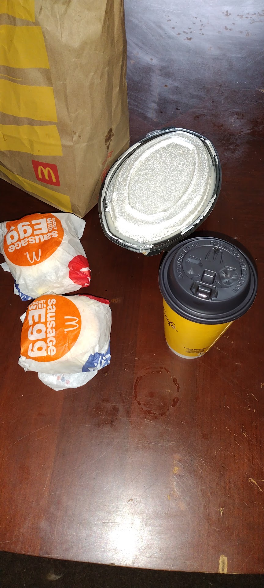 Food came up. It was hot and fresh. I had ordered a biscuits and gravy as an extra since I had not seen them in any other McD's this trip. As per what happens most often, biscuits that should have been tossed last hour are kept and used for the biscuits and gravy. In the past I have taken the food back when this happens, but I just dealt with a rubbery hard biscuit today.