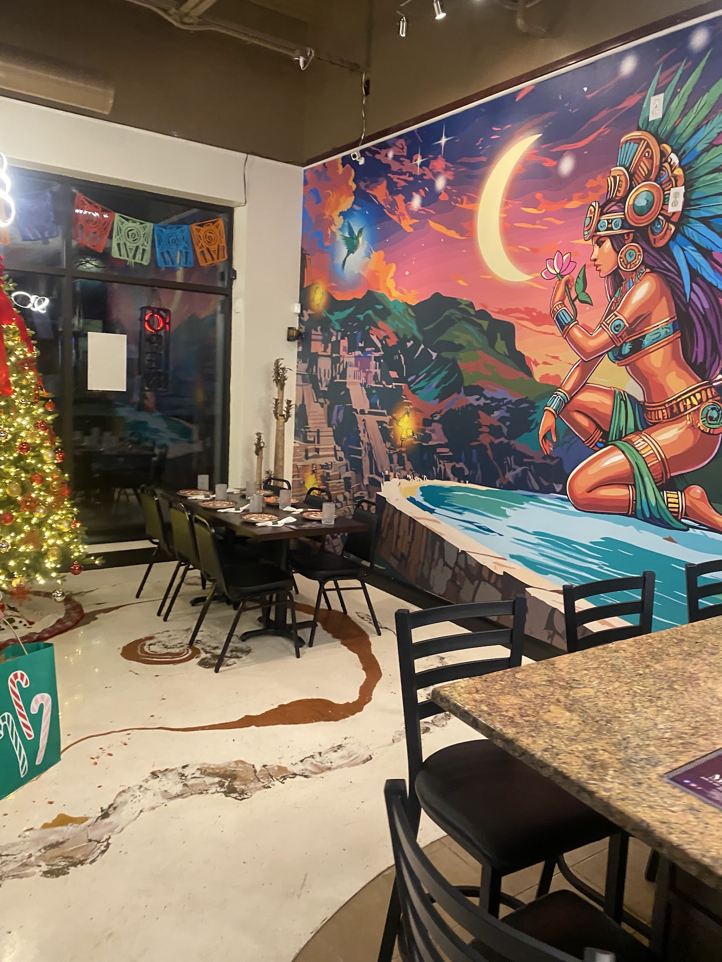 Read moreFriendly and attentive staff, stupid fast service (they seemed a bit bored on a slow Tuesday). Perhaps meat entrees are better but I went with the veg burrito and it was solidly mid. no beans in it so not a complete protein, had to order hlack beans on the side, which seemed legit and stewed with a whole and proper bay leaf. Burrito interior though appeared to be bagged frozen veg and cheese. It was all perfectly fine but would have appreciated fresh veg and included beans. I suspect this place used to be a club because it has a very "da club when the lights come on at closing time" vibe which was a bit awkward. Murals are doing some work but I did wonder if one or two was AI. It wouldn't come to mind to recommend the place but I wouldnt warn people away either. shrug perhaps it's more...