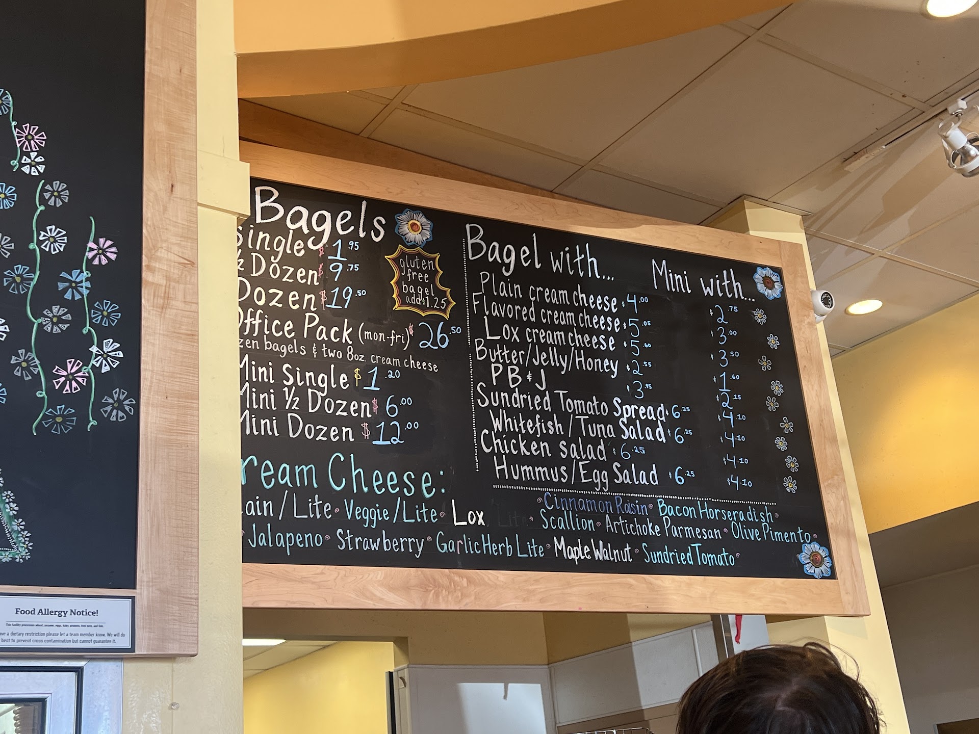 Read morePulling back from the previous 5 star rating. Two reasons. First, things were not as fresh as advertised and wasn't the first time they were out of something listed on the menu. This time it was cucumber. Secondly, I ordered two bagels with cream cheese and veggies and two drinks at a cost of $28 after a $2 tip. That's a bit pricey and this is why: The clerk asked if I wanted a pickle, to which I affirmed, and she therefore proceeded to bill me for build your own sandwiches which is more like a combo and comes with chips. So, as you can tell by me taking time to edit my review, this slight of up charge did not sit well with me. Suggest to management to provide option of Al la carte toppings as charging $3 extra for a few veggies isn't an appropriate charge in my experience. And also to train employees to not assume a customer's preference. A decision doubling the cost of a meal should have...