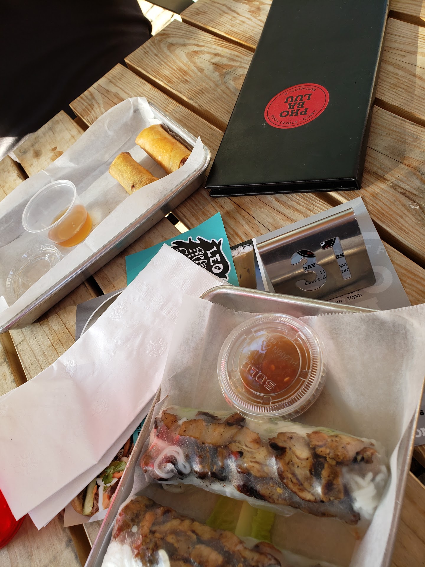 Read moreWe tried this restaurant based off of an Instagram promoter. You order at the counter and they bring the food to you. We decided to sit at the bar. Atmosphere was better in the bar area. I asked for grapefruit juice and vodka they didn’t have it, asked for a lemon drop martini, they could not make that either. My husband asked for one of the beers on tap but the keg wasn’t working. I ended up getting a daiquiri off their cocktail menu and it was good. Husband got a different beer. We ordered spring rolls as an appetizer. They came out dark brown/black. You could tell they had been fried a long time ago and then fried again to serve to us. Heavy grease feel. I got the Pho with beef and vegetables. The broth was almost as flavorful as a liter of water with a teaspoon of bullion. Almost. The accompanying ingredients were served to me in a wax paper bag (lime, fresh jalapeño, sprouts) on the side. My husband got garlic noodles with chicken. The noodles were sticky and overcooked. Tasted like a grocery store bought Lipton soup noodle meal. Chicken was almost non existent. Portions small. Which was fine because the food was below mediocre. Sadly would definitely not recommend. Many other places to get good...