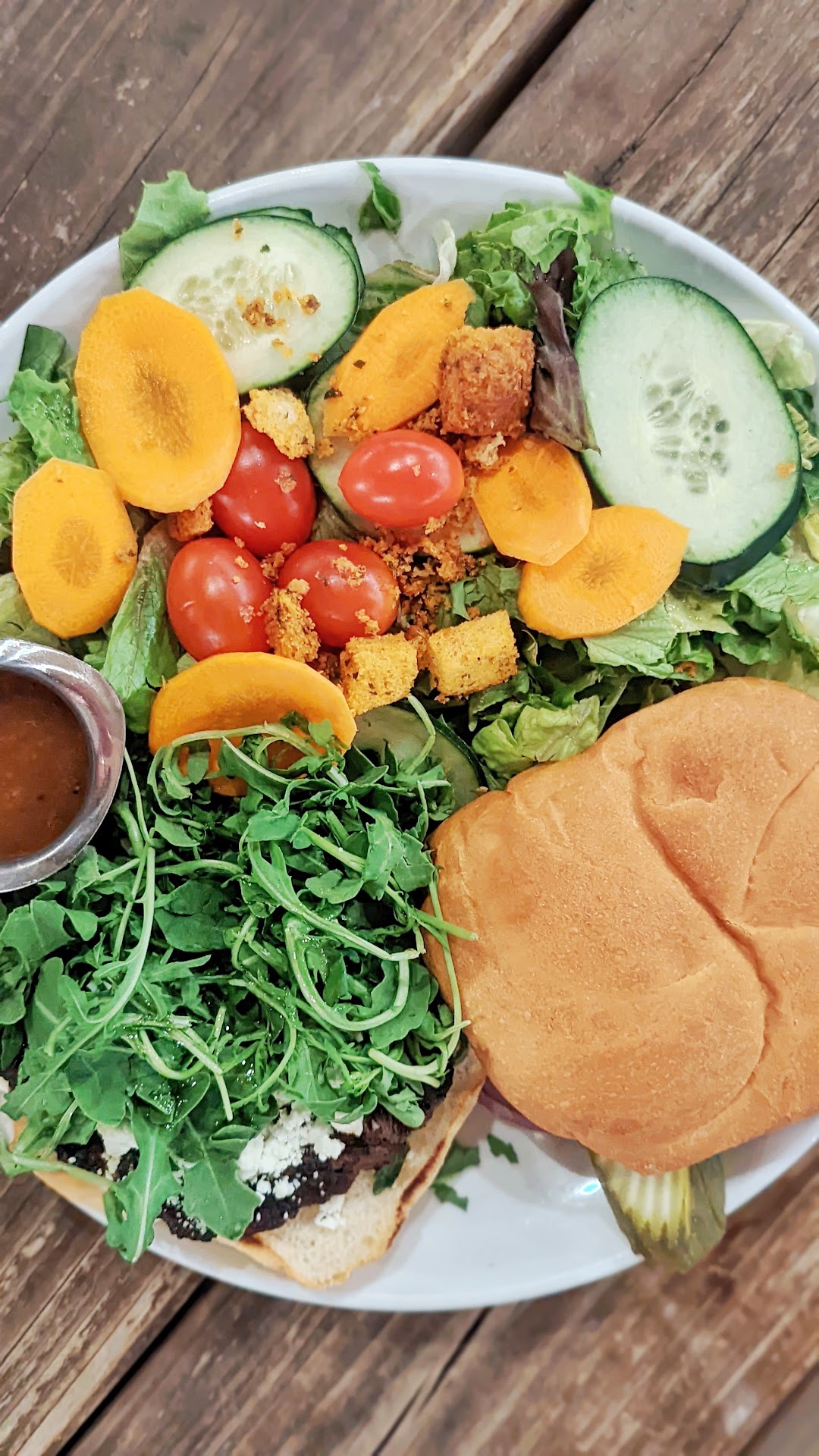 My fiance got the Lamb Goat Cheese Burger (lamb patty topped with goat cheese, arugula and honey), with the side salad. The dressing on his salad was amazing! As for that burger... So so good! I tried a bite and oh man.. Everything went so well together! He definitely loved this meal.