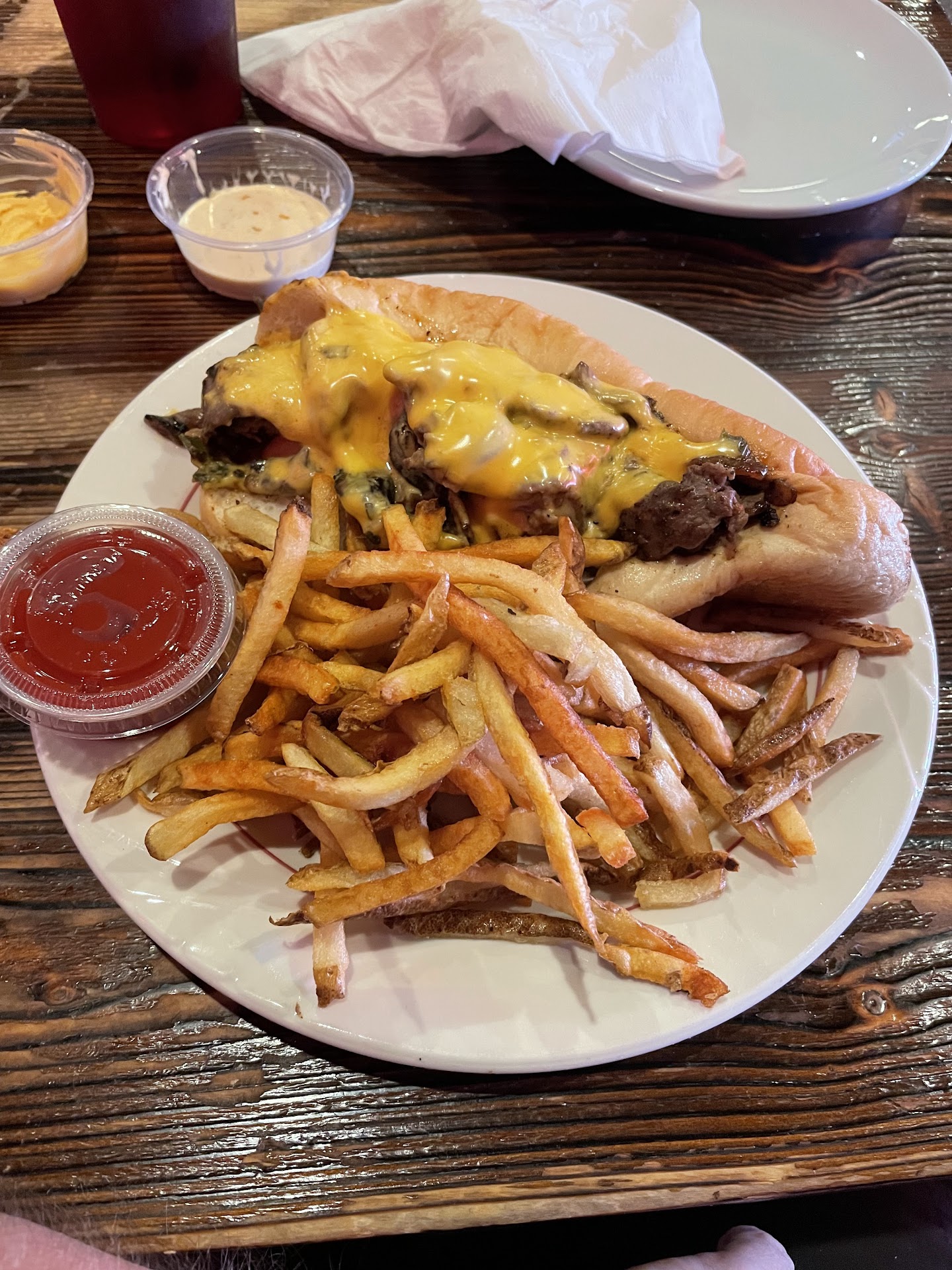 If I had one critique about anything it was my sandwich and it wasnāt even enough to dock a star. I love Philly cheesesteak sandwiches and Iām picky about them. The peppers and onions were cut up so tiny and stuffed on the bottom and were soggy on the bun which made them nearly impossible to taste. Flip that and put them on top, make them bigger then add the cheese. It tasted mostly of meat and cheese and hard to taste anything else.