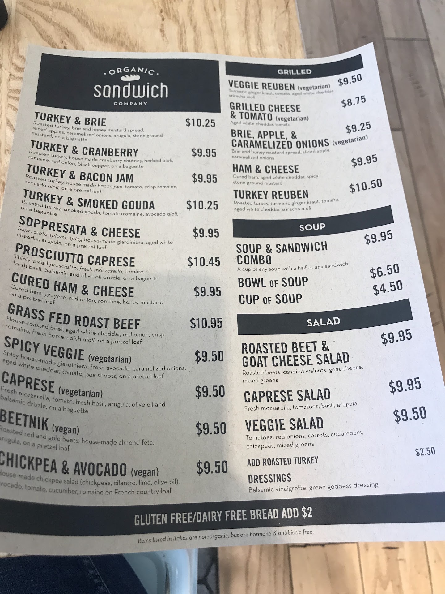 Read moreI got the turkey and Brie warmed up. The service was better here than the Boulder location. Staff seem to lack enthusiasm and seem like they’re just going through the motions. The bread was very hard and not necessarily enjoyable to eat. The sandwich was just okay, nothing to rant and rave about. I think it’s worth a try if you like sandwiches, but I most likely wouldn’t go out of my way to go back. Out of both locations I haven’t been very impressed. The business name seems to take advantage of the “Organic” buzzword and label. The sandwich also made my stomach hurt a hour or so after eating so I’m not sure why but you’d figure an organic sandwich would do the opposite of that. There’s certainly room for improvement all around. My sandwich also didn’t seem to have any Brie on it whatsoever which was confusing since the name of the sandwich was...
