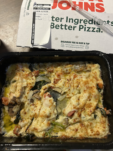 Read moreA friend ordered dinner for me and my family from this Papa John’s after I’d had surgery and had very limited mobility. My friend sent me a screenshot of the order so I knew when and what to expect; she scheduled for it to be delivered at 5:30. It was not a big order- a large stuffed crust pizza and side of breadsticks. At 5:50 I called the restaurant to confirm it was still coming. The person who answered the phone said the delivery person was on their way and I could expect them shortly. Just after 6 the delivery driver showed up with our order. My family ate the saddest, lukewarm pizza for supper. The crust itself was just barely baked but had been rolled so thin it was flimsy, no one could pick up their actual pizza without it falling apart. My four year old and nine year old even commented that I the slices were thin. The breadsticks were fine, everything tasted as it should.