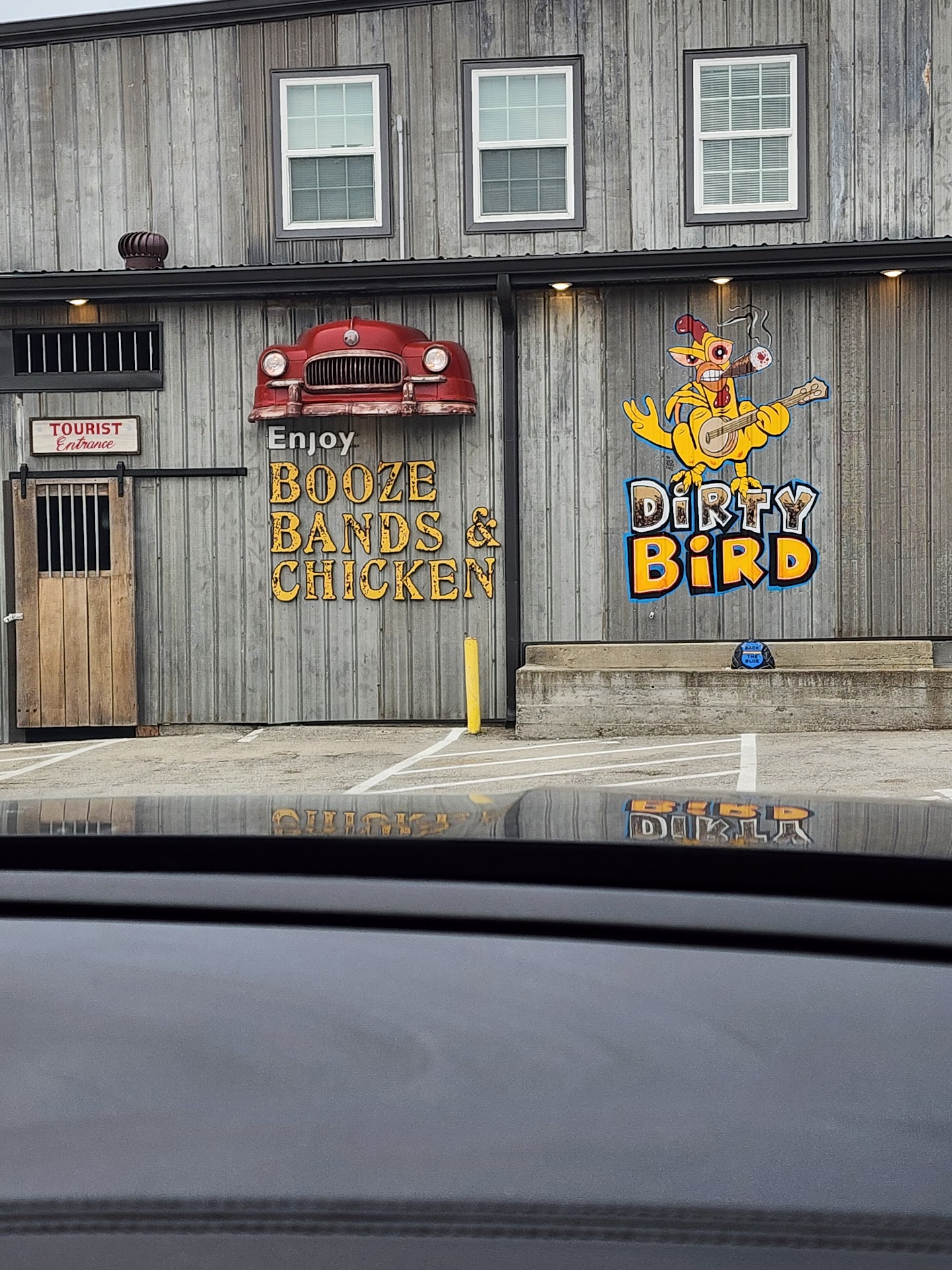 First impressions? The thematics of the place is definitely an eye catcher. There is so much to look at. My favorite exterior piece to see is the front of the vintage cars they have mounted on the building and the coolest part is when it's dark, the headlights light up. Love the mascot of the place. Didn't realize what the mascot was until the end of the first day after staring at it for a few minutes to admire it. The inside is homey. I love how you can access it from the outside (they have an exposed open area with garage doors) and from the side. THEY HAVE BULL RIDING! Well, it's a chicken. But real cool! At the time of this post, it's down for maintenance. But can't wait to see it in operation. Won't catch me on it though. Lol.