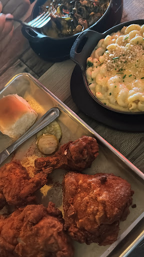 We ordered wings, collard greens and chicken pot pie. None of them came out together. Wings were a decent flavor but burnt. Greens were delicious and the chicken pot pie was not good. I actually had to dip it into the greens sauce that was left over.